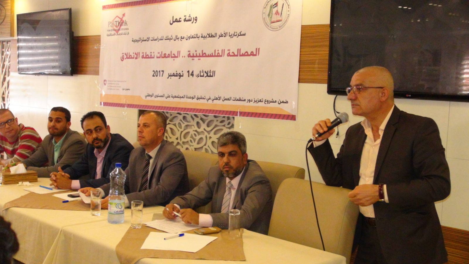 من جانبه تحدث الدكتور كمال الشاعر أستاذ الاعلام في جامعة فلسطين عن أهمية الجامعات والشباب , والمهم الاطلاع على نماذج البلدان الأخرى التي تهتم بالشباب والجامعات وتعتبر الجامعات مرجعية في اختيار القيادات للدول, وأهمية البحث العلمي الذي يساهم في تعزيز وقوة المجتمع . وأضاف د. الشاعر أن الجامعة تعتبر واحة للعمل الطلابي والتنوع الفكري انتشار قيم التسامح والحوار, والمن المم أن تطلق الجامعات سياسة الحوار بين جموع الطلبة باعتبار ذلك تعزيز لقيم ثقافة تقبل الأخر , وعدم التعصب بالرأي , حيث أن التجربة أكدت لنا بأن التعصب في الرأي يؤدي الى بحر من الدماء , لذلك المطلوب من الجامعات أن تكون رافعة للمصالحة الفلسطينية. من جانبه تحدث الدكتور أسامة الأخرس أستاذ القانون في جامعة الاسراء بأن الانقسام الفلسطيني أثر على كافة مناحي الحياة وربما على الجانب الطلاب أثر على الطلاب الذين يريدوا اكمال دراستهم الجامعية, وان تم الحديث عن الجامعات فتعتبر الجامعات قد خرجت العديد من القيادات الفلسطينية وكانت خير رافد للمجتمع , وكذلك الاتحاد العام لطلبة فلسطين كان له دور بارز في تعزيز المشروع الوطني , وعلى مستوى النموذج العربي والدولي يعتبر الطلاب هم مصدر الوعي والعنفوان والحيوية , ولديهم القدرة على تغيير السياسة الداخلية للدول.