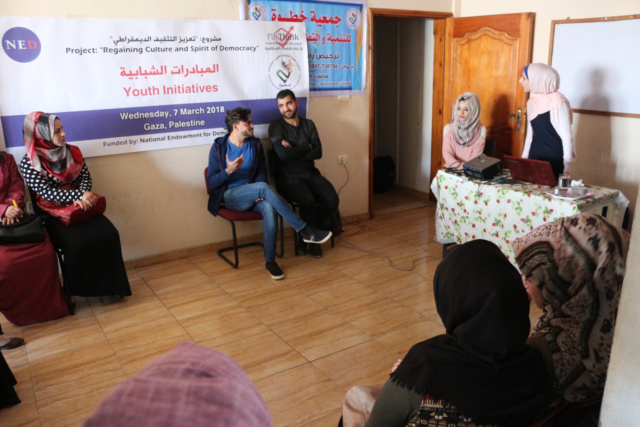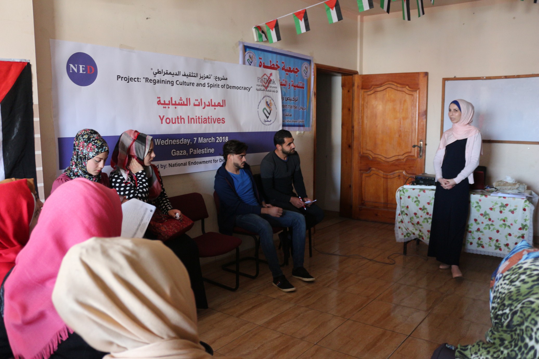 نفذت مؤسسة بال ثينك للدراسات الاستراتيجية ورشة عمل بعنوان “المبادرات الشبابية”، ضمن مشروع “تعزيز التثقيف الديمقراطي” الممول من الصندوق الوطني للديمقراطية ((NED، في جمعية خطوة للتنمية والتطوير في شمال القطاع، وذلك بحضور أكثر من 25 طالب وطالبة من تخصصات جامعية مختلفة، حيث يهدف اللقاء إلى توعية الشباب بأهمية المبادرات الشبابية وتأثيرها الإيجابي على المجتمع؛ علماً بأن هذا النشاط هو الخامس عشر والأخير من سلسلة أنشطة نفذت في كافة أنحاء قطاع غزة ضمن المشروع.