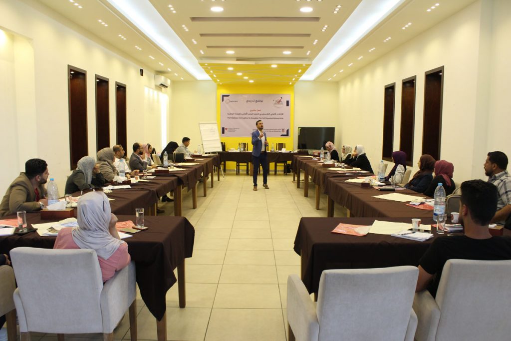 نفذت مؤسسة بال ثينك للدراسات الاستراتيجية برنامجا تدريبيا ضمن مشروع “تعزيز التعاون بين المؤسسات الاهلية من أجل الانسجام المجتمعي” والذي تنفذه “بال ثينك” بالشراكة مع الحكومة السويسرية، للعمل على تعزيز المصالحة المجتمعية والسلم الأهلي ، وذلك من خلال تشكيل “الائتلاف الأهلي الفلسطيني لتعزيز السلم الأهلي والوحدة الوطنية” والذي يضم49 مؤسسة أهلية في المحافظات الشمالية والجنوبية […]