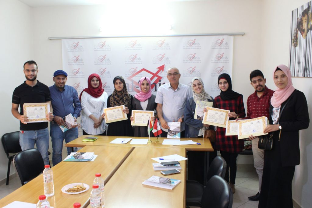 اختتمت بال ثينك للدراسات الاستراتيجية برنامجاً تدريبياً بعنوان “مهارات التعبير والكتابة الفكرية” الذي امتد من يوليو 2019 إلى فبراير 2020، وذلك ضمن مشروع “تعزبز المشاركة الديمقراطية للشباب الفلسطيني” بدعم من حكومة كندا، ويأتي هذا ضمن جهود “بال ثينك” في تعزيز التنمية البشرية المستدامة من خلال الاستثمار في الشباب. في إحتفال بسيط نظم مع المشاركين في […]