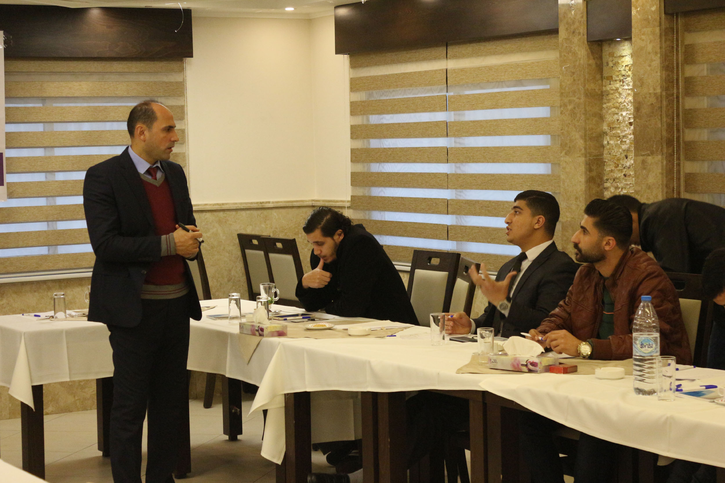 Mr. Mansour Abu Karim began his session by talking thoroughly about the democratic experience of the Palestinian situation. He contended, “We, as young people, are caring about the Palestinian situation, studying and analyzing it to reach clear convictions, to learn about the strengths and how to promote them; what are the weaknesses and how to avoid them.” Furthermore, he reviewed the Palestinian democratic experiment and the history of elections with regard to the Palestinian situation, explaining the stages it underwent and the beginning of forming a Palestinian identity and national identity. He discussed with the participants the concept of democracy and elections and the suffering of the Palestinian situation, confirming the need to strengthen the rule of the people as a basic source for democracy. Very motivated, he expressed how we, citizens, need to be motivated enough to consolidate participation in elections, without allowing anyone to take advantage of our circumstances. Participants understood how people should be fully aware of the importance elections and democracy. Eventually, participants were divided into two groups: one representing strengths and the other weaknesses in order to review the Palestinian democratic situation and identify its failures and successes.