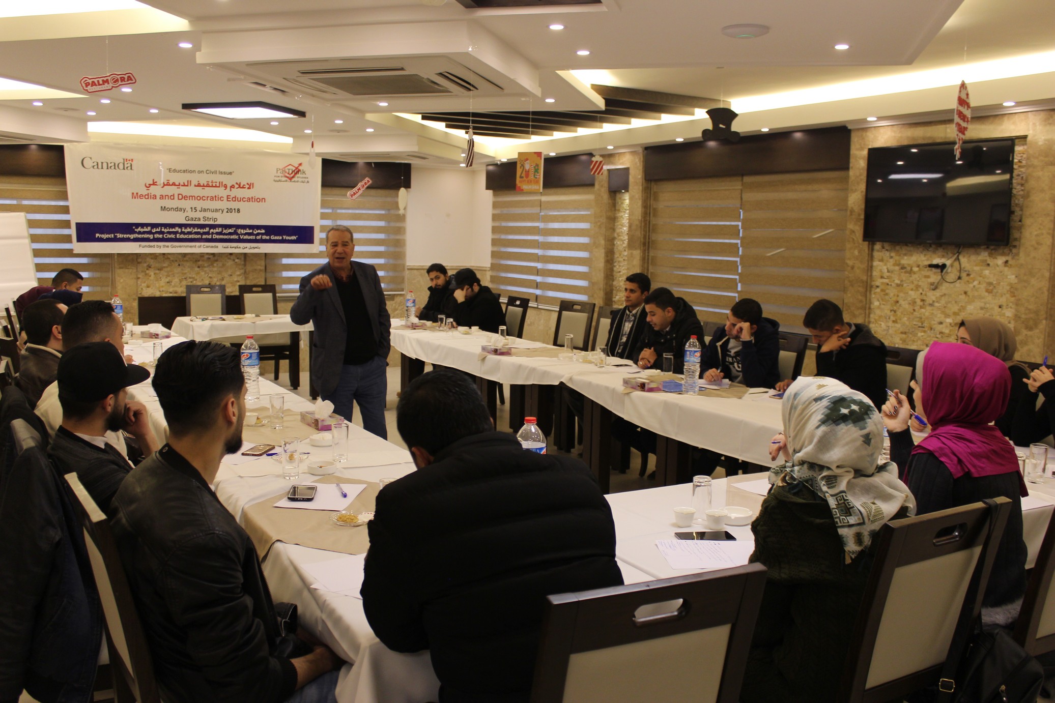 Interestingly, this session was the eighth of a series of 10 educational lectures and radio workshops to be convened on democracy and political development in Palestinian society, as well as three training courses on anti-corruption issues and the promotion of community accountability and transparency within a six-month project entitled “Promoting Democratic and Civic values for Youth”.