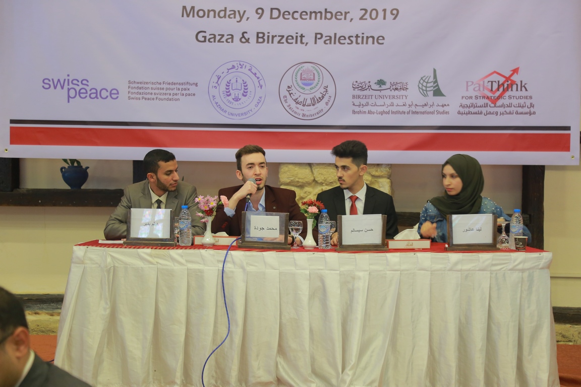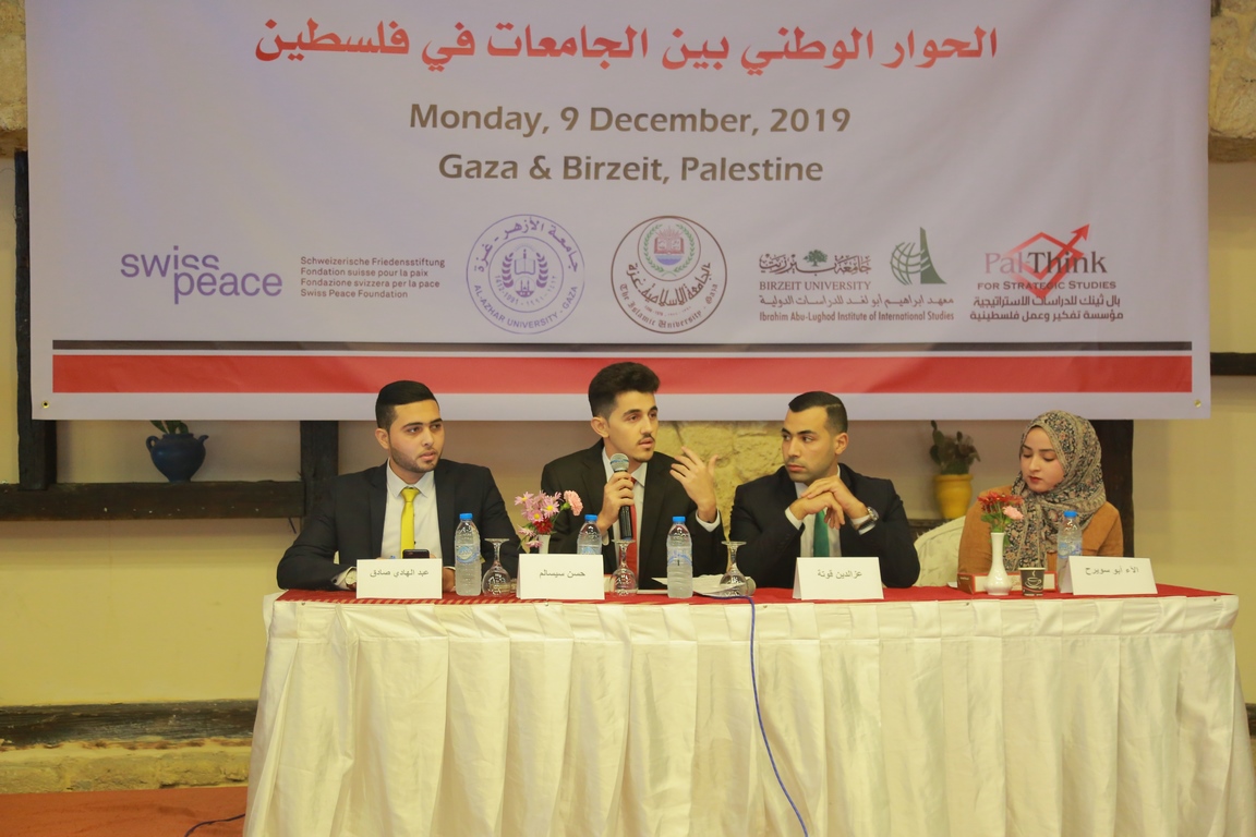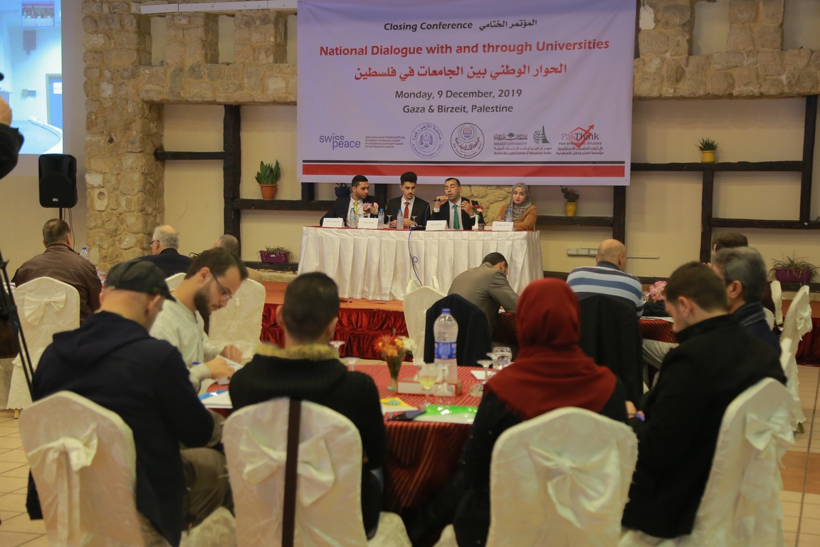 In partnership with Al-Azhar University of Gaza, Islamic University of Gaza and Swiss Peace Organization and with support from the Swiss Government, Pal-Think for Strategic Studies and Birzeit University organized the closing conference for the project titled “National Dialogue Amongst Universities in Palestine”. More than 170 people of elite academics, researchers, professors and university students attended the conference.