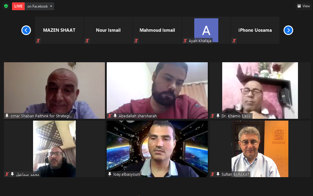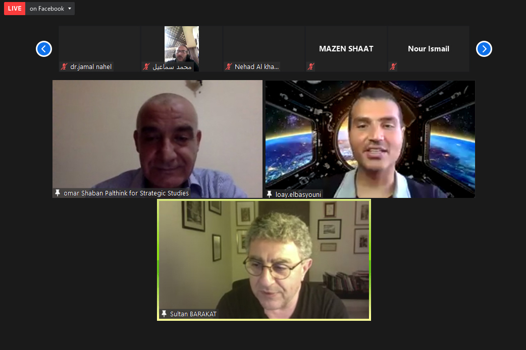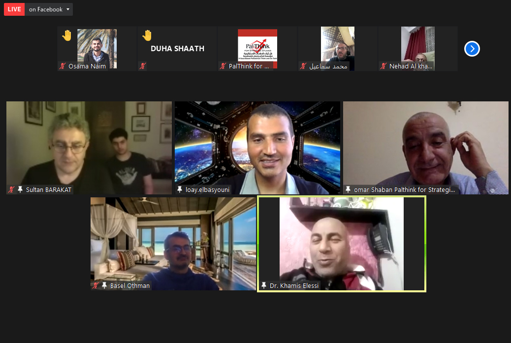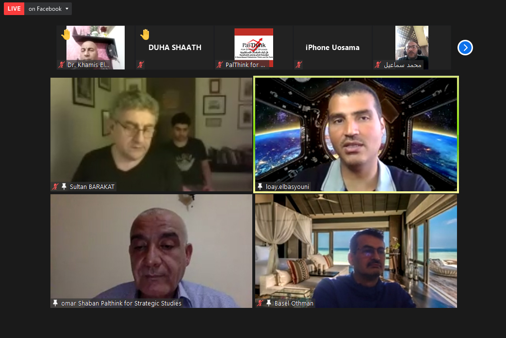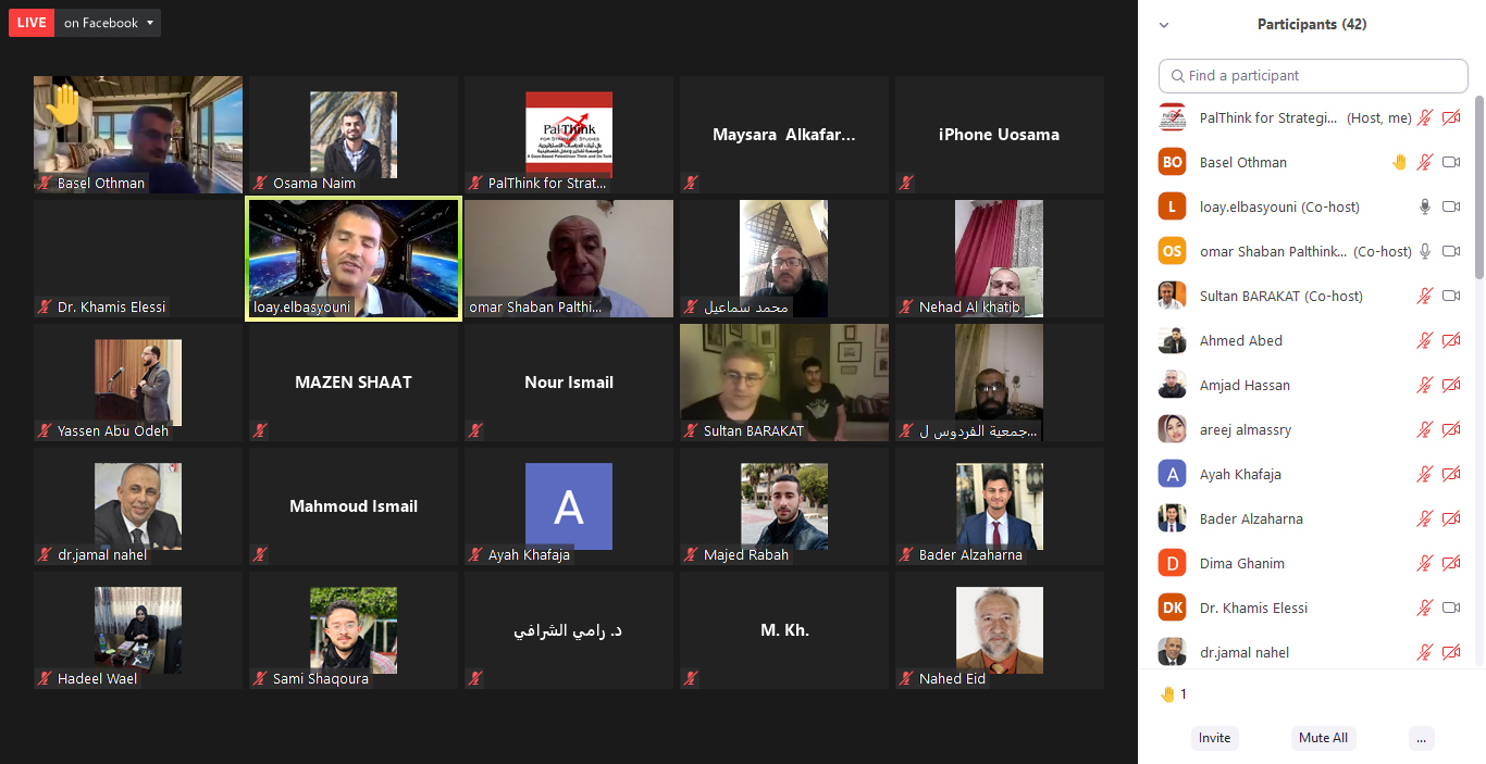 Then, Mr Omar Shaban, PalThink’s manager, clarified that this special scientific encounter is in the context of the principles and objectives from which PalThink was launched; as a Palestinian think tank, trying to keep pace with developments in the areas of politics, economics, sociology and culture. It is worth noting that PalThink is a Palestinian – independent and non-profit think tank – engaged in research at the national and regional levels.