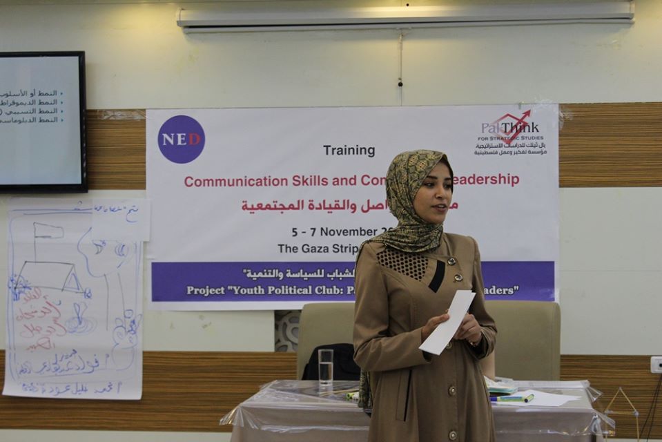 تلقى أعضاء منتدى الشباب للسياسة والتنمية تدريباً بعنوان “مهارات القيادة العامة والتواصل” ضمن خمس مواضيع تدريبية تنظمها مؤسسة بال ثينك للدراسات الاستراتيجية ويمولها الصندوق الوطني للديموقراطية (NED). حيث تهدف التدريبات لبناء شخصية أعضاء النادي وتهيئتهم لقيادة التغيير الإيجابي في مجتمعاتهم. قدم التدريب كلاً من الأستاذة سماح الصفدي والأستاذ محمد الناطور حيث ناقشا مع المتدربين مواضيع محورية منها استراتيجيات التواصل الفعال، لغة الجسد، الاستماع الفعال، العمل الجماعي، ومواضيع أخرى.