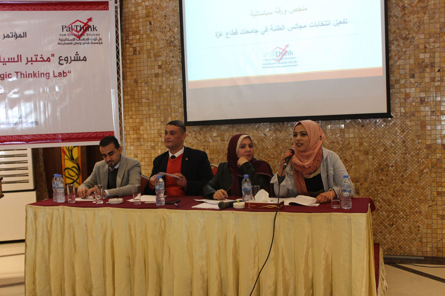 كما قدمت الباحثة هالة أبو عبدو ورقة بعنوان “تفعيل انتخابات مجالس الطلبة في جامعات قطاع غزة” تعرضت لمشكلة توقف انتخابات مجالس الطلبة في جامعات قطاع غزة، وأثر ذلك على الطلبة والمجتمع. وأوضحت معيقات إجراء الانتخابات في الجامعات، وموقف الأطر الطلابية من انتخابات مجالس طلبة، وأهميتها. وطرحت ثلاثة بدائل: إجراء انتخابات مجالس الطلبة بشكل دوري في قطاع غزة، تحييد انتخابات مجالس الطلبة عن دائرة الانقسام، تحديث النظام الانتخابي لمجالس الطلبة. وأخيراً، تمت محاكمة البدائل.