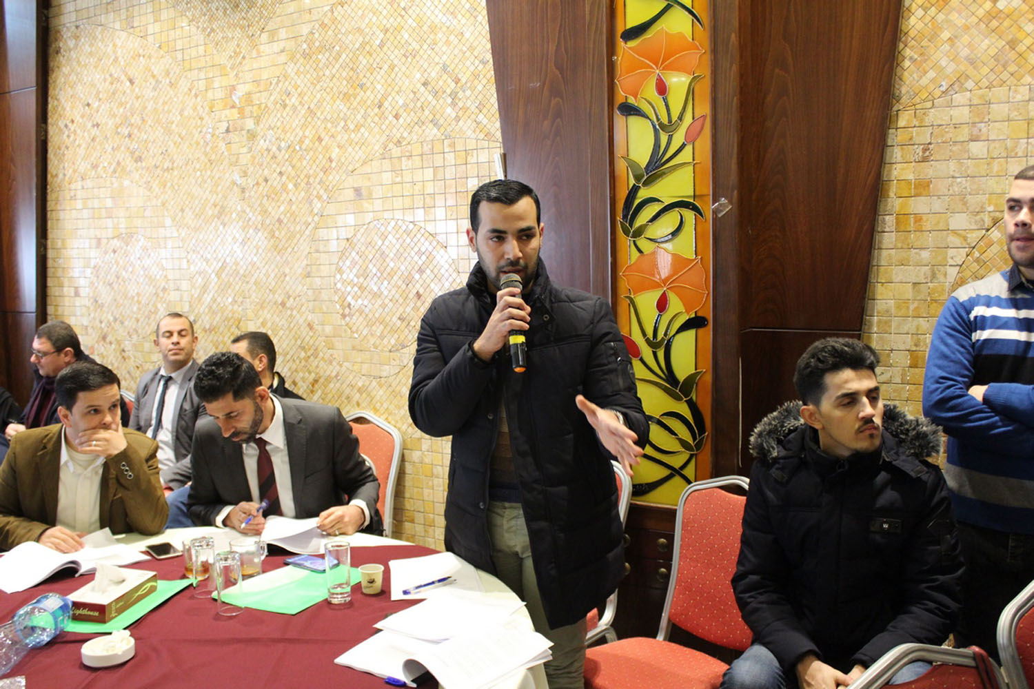 وخلال الجلسة الثالثة التي أدارتها د. سامية الغصين، أ. القانون الدولي العام، قدم الباحثان بلال الشاعر وهالة أبو عبدو ورقة بعنوان “سياسيات تعزيز قطاع التأهيل في تطبيق معايير الحماية ضمن الاستجابة الإنسانية للأشخاص ذوي الإعاقة في قطاع غزة” ناقشت مشكلة ضعف دور مؤسسات التأهيل في قطاع غزة بتطبيق معايير الحماية للأشخاص ذوي الإعاقة الذين يعانون من تهميش مجتمعي وسياسي. وسلطت الضوء على واقع الحماية في الاستجابة الإنسانية في محافظات غزة، وعلى واقع ذوي الإعاقة في القطاع، وأسباب ضعف قطاع التأهيل. وقدمت الورقة ثلاثة بدائل وهي: تبني قطاع التأهيل معايير الحماية في الاستجابة الإنسانية، وإشراك ذوي الإعاقة في عملية وضع السياسات والتشريعات والبرامج ذات العلاقة، وتفعيل سياسات الرقابة من قبل قطاع المؤسسات الأهلية والحكومية. وتمت محاكمة البدائل.