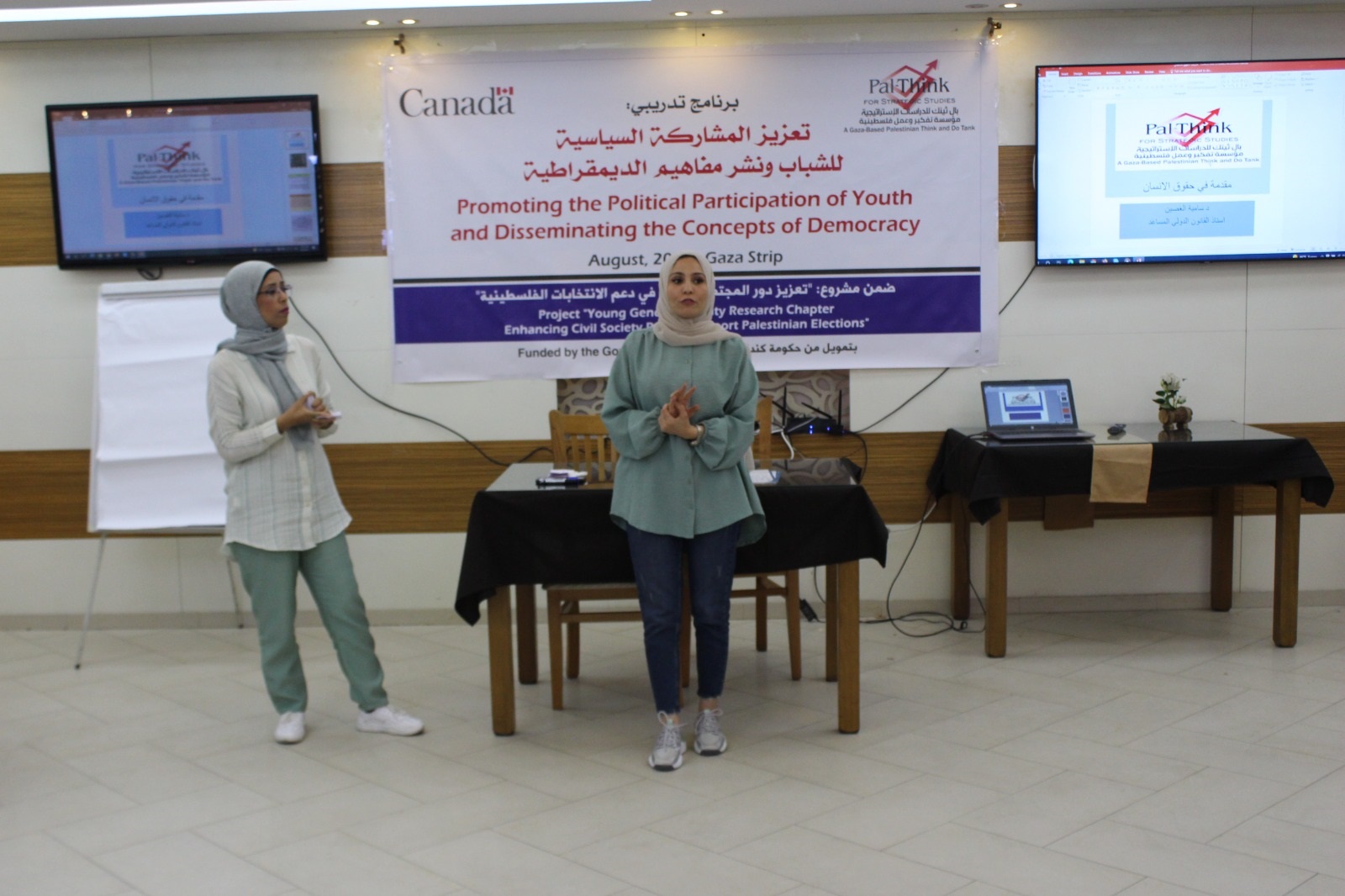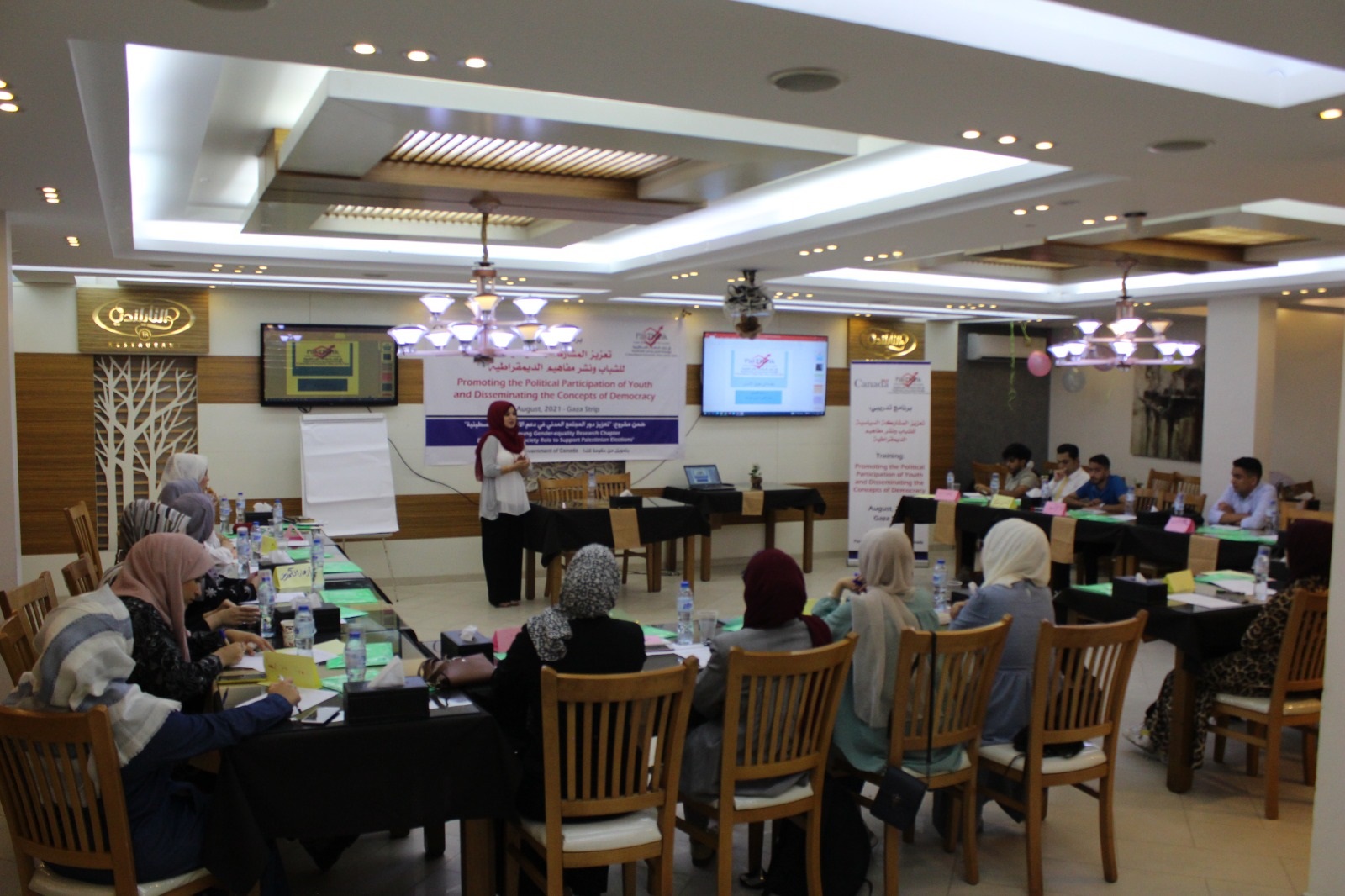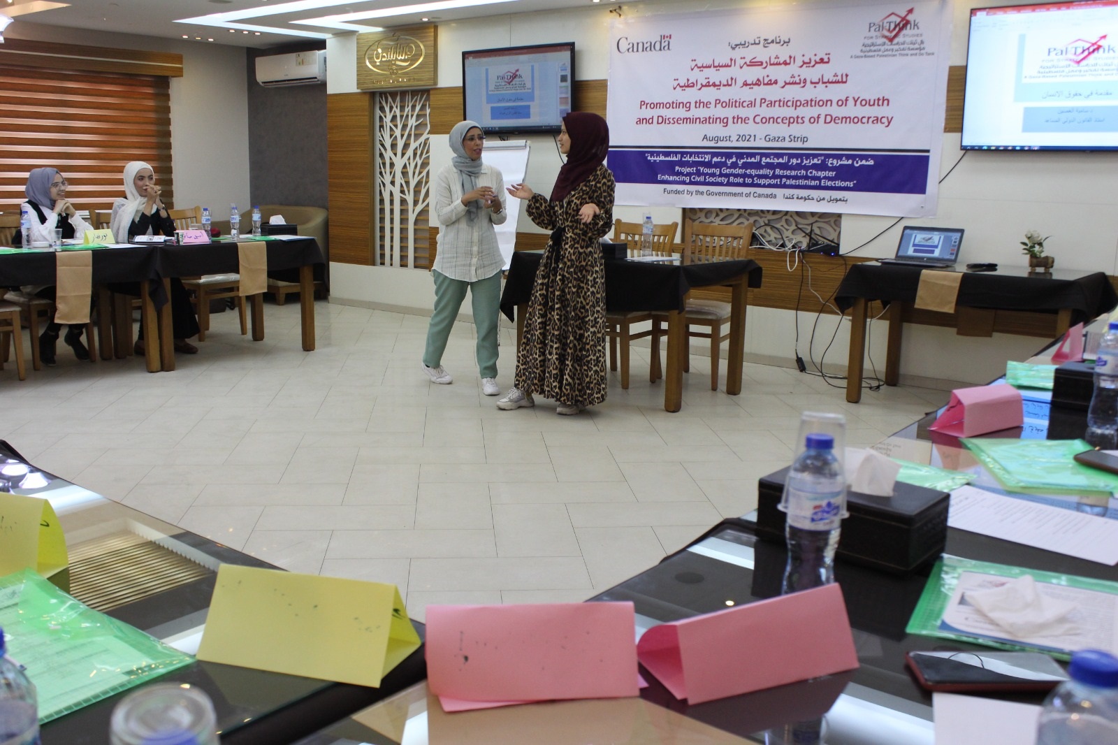 من جانبها، قالت المدربة د. سامية الغصين، أ. القانون في جامعة الأزهر والتي نفذت اليوم التدريبي الأول، إن الهدف من التدريب هو تعزيز مشاركة الشباب السياسية والانخراط في الشأن الفلسطيني المعقد، لا سيما وأن الشباب مُحيدون بسبب الانقسام وضآلة فرص مشاركتهم في القضايا العامة.