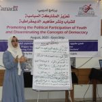 وأوضحت أن البرنامج التدريب الممتد لسبعة أيام يشتمل على تدريبات حول حقوق الإنسان في القانون الدولي واستخدام حملات الضغط والمناصرة للمشاركة في صنع القرار، والحوار الوطني ومفاهيم الديمقراطية، والمشاركة السياسية للشباب والمرأة، وعقد المناظرات وجلسات الاستماع، ومهارات العرض والاتصال والتواصل.