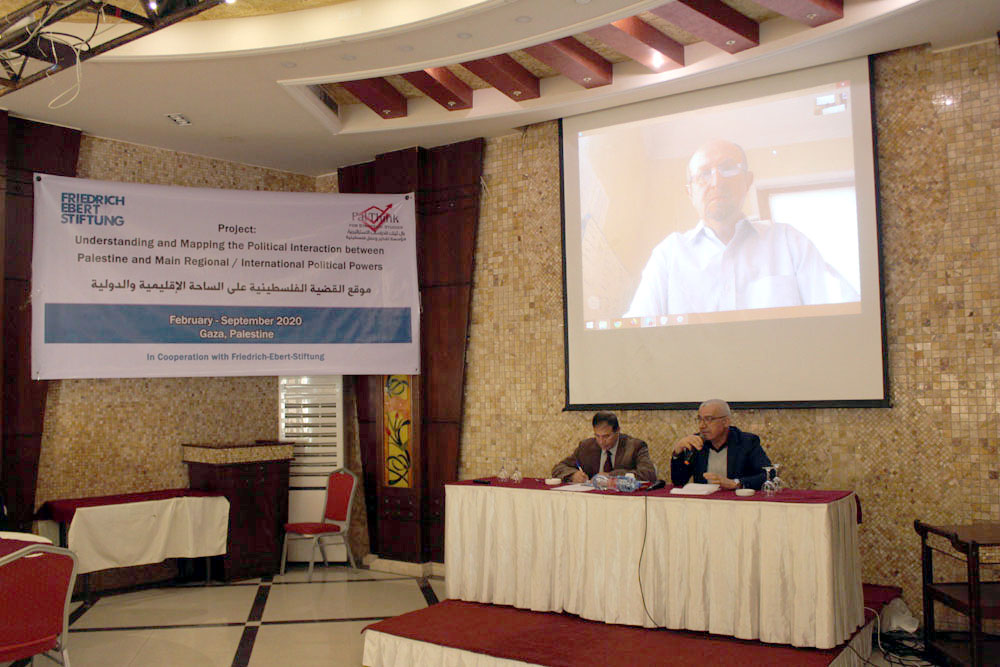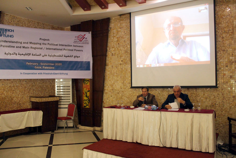 وافتتح الجلسة مدير “بال ثينك” أ. عمر شعبان بالترحيب بالحضور، وقال: “يأتي هذا اللقاء ضمن عمل بال ثينك بالشراكة مع مؤسسة فريدريش الألمانية لتسليط الضوء على التطورات الجارية في العالم والإقليم والمرتبطة بالقضية الفلسطينية، لتحسين مجالات الحوار في فلسطين عامة وقطاع غزة خاصة”.