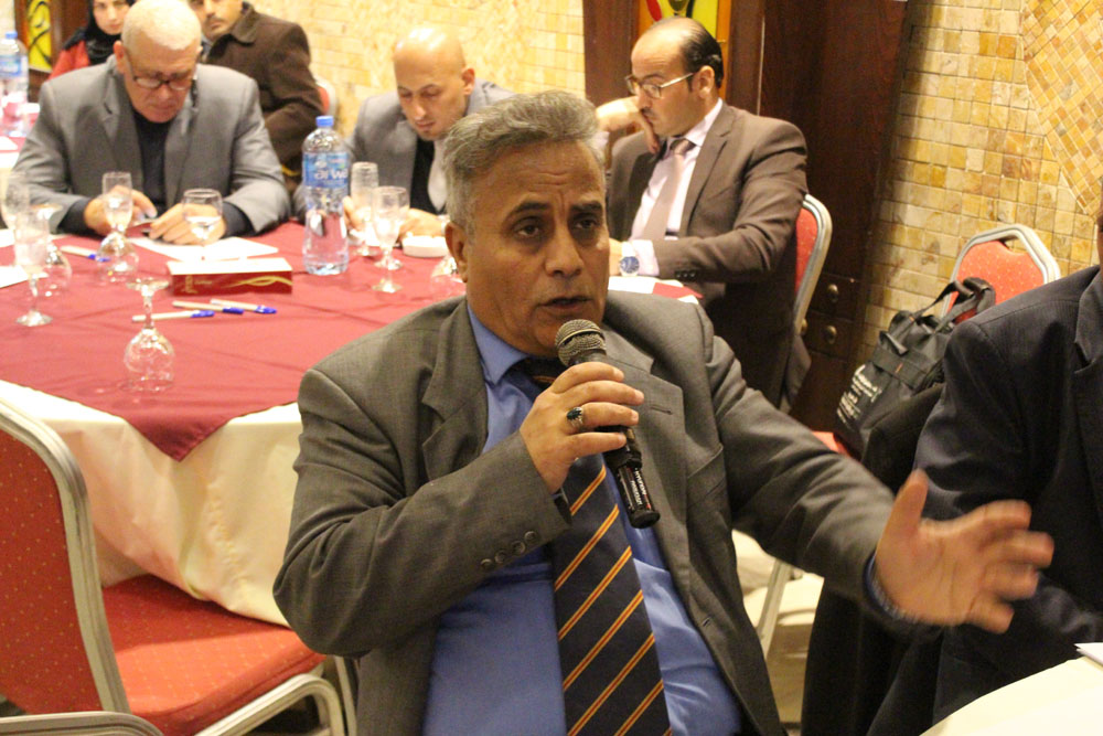 واستمع أ. هادي لإجابات متباينة من الحضور رداً على سؤال طرحه عليهم، وهو: “لماذا لا توجد رؤية موحدة للفلسطينيين جميعا؟”.