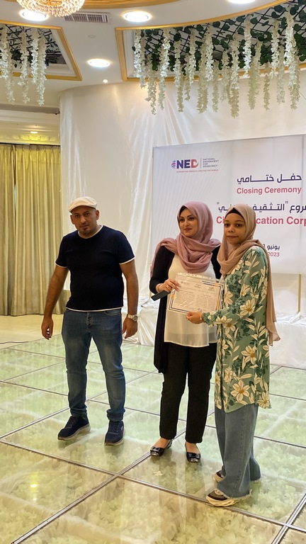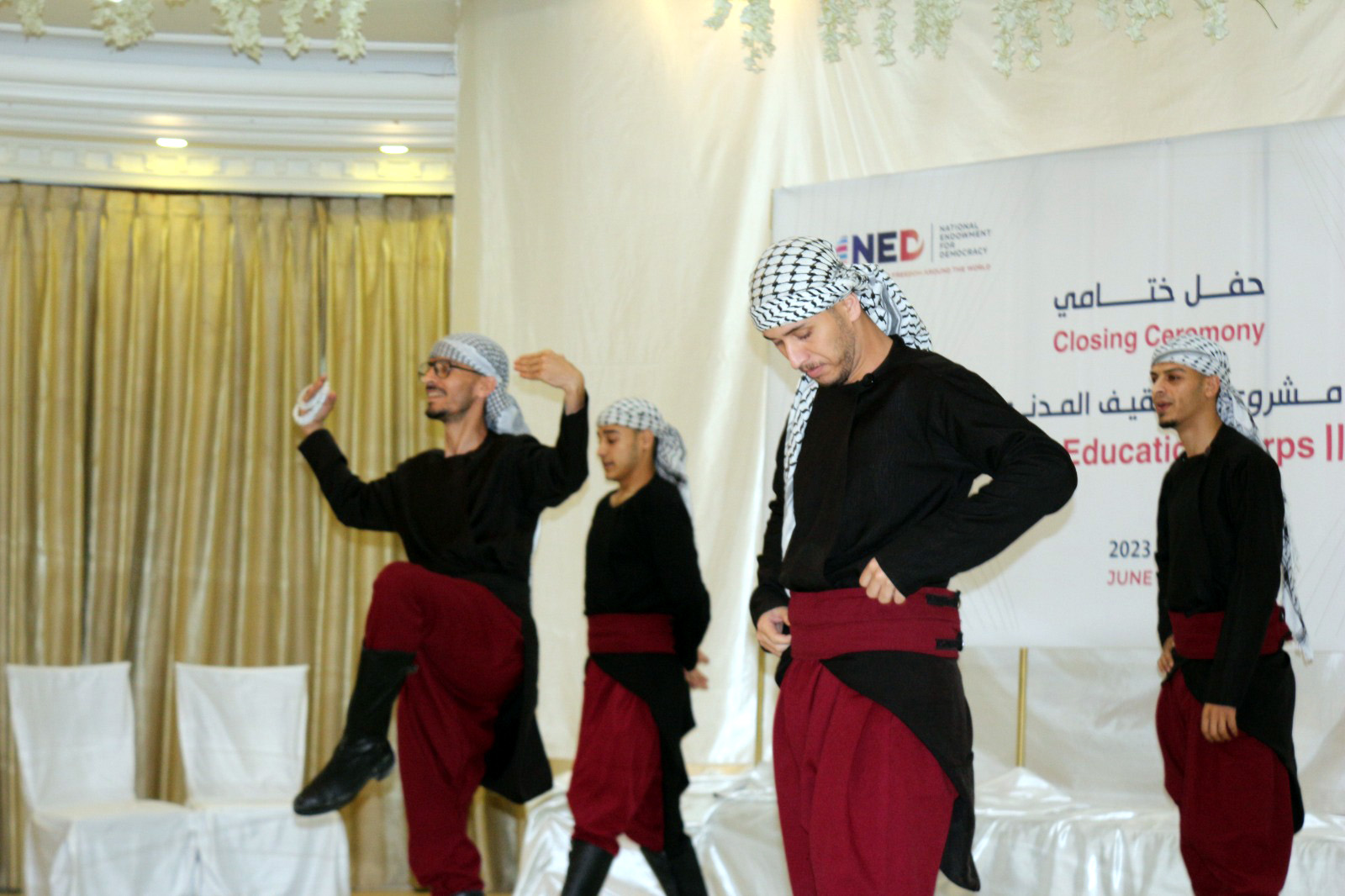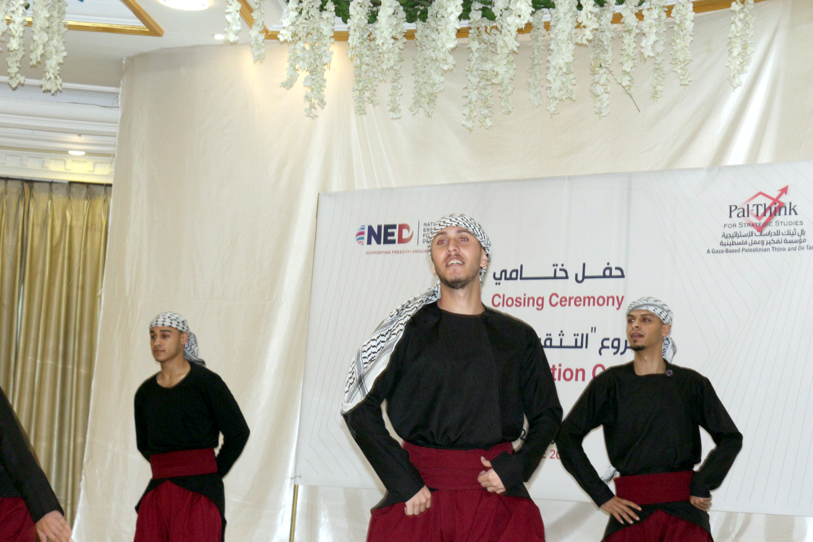 وقد تضمنت فقرات الاحتفال “الفلكلور فلسطيني” ، ومن ثم توزيع الشهادات على المشاركين.