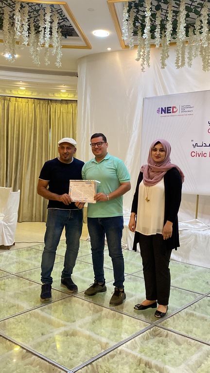 احتفلت بال ثينك للدراسات الاستراتيجية باختتام مشروع “التثقيف المدني- المرحلة الثانية” الممول من الصندوق الوطني للديمقراطية NED بحفل ختامي حضره الخريجون ومجموعة من الشباب الناشطين مجتمعيا. وقد شارك “أعضاء هيئة التثقيف المدني” بالتقديم و التنظيم لهذا الحفل، كما عرضوا مجموعة من التجارب الشبابية الملهمة في المشروع. إذ قدم الاحتفال المشارك “عبد الرحمن إسماعيل”، والذي عبر بإسم زملائه عن سعادتهم بهذه المشاركة وبعد شهور من العمل الشبابي الجماعي، سواء بالتدريب أو التحضير للورش والجلسات، أو الإعداد لجلسات الإعلام، ومن ثم كتابة الأوراق، وصولاً للحفل الختامي بكتاب يشمل أفكارهم ويحمل أسمائهم.