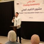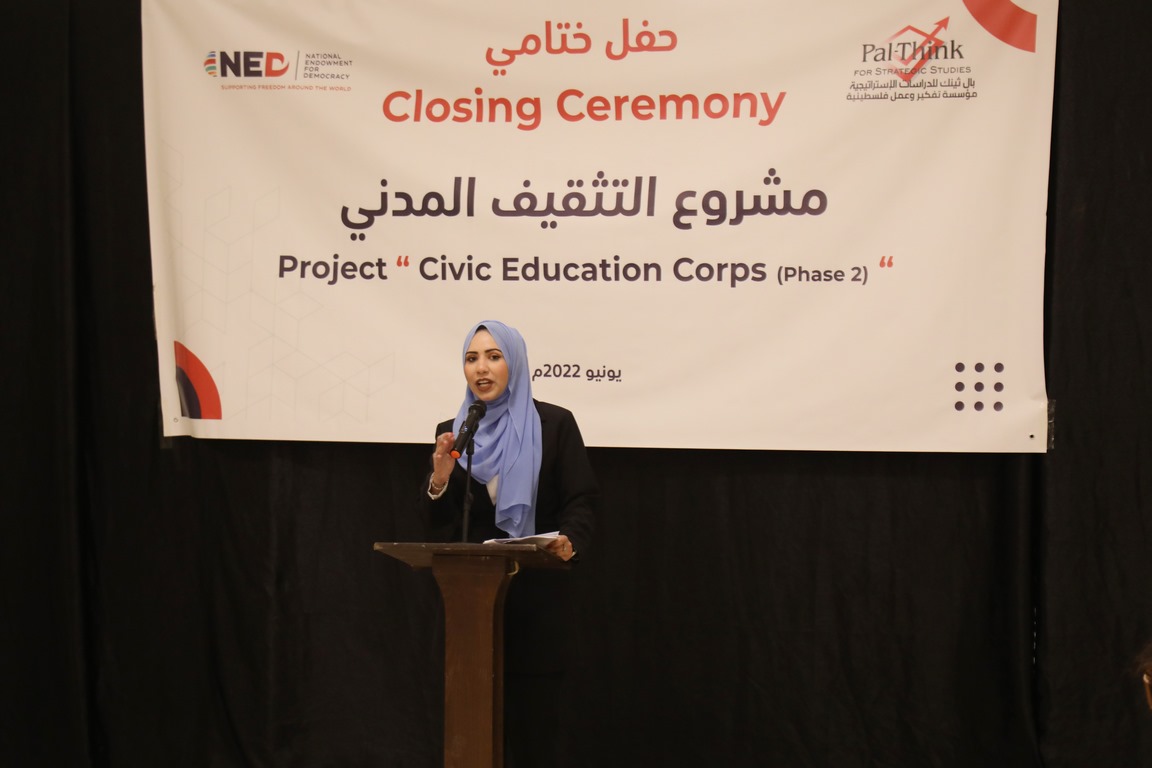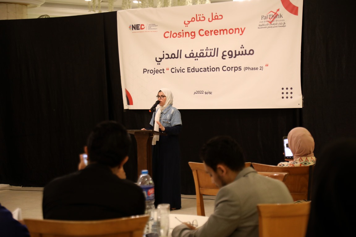 واختتمت المتدربة جمانة أبو سنجر، 21 عام، الحفل بالحديث عن ثمار التدريب عليها قائلةً “ساعدني التدريب في تنمية المهارات الناعمة وقبول الأفكار المختلفة والتعايش مع الآخر، وكتبت ورقة بحثية حول آليات تعزيز العمل المجتمعي، وشاركت في كتابة ورقة أخرى عن تداعيات الانتخابات على الحياة السياسية”.