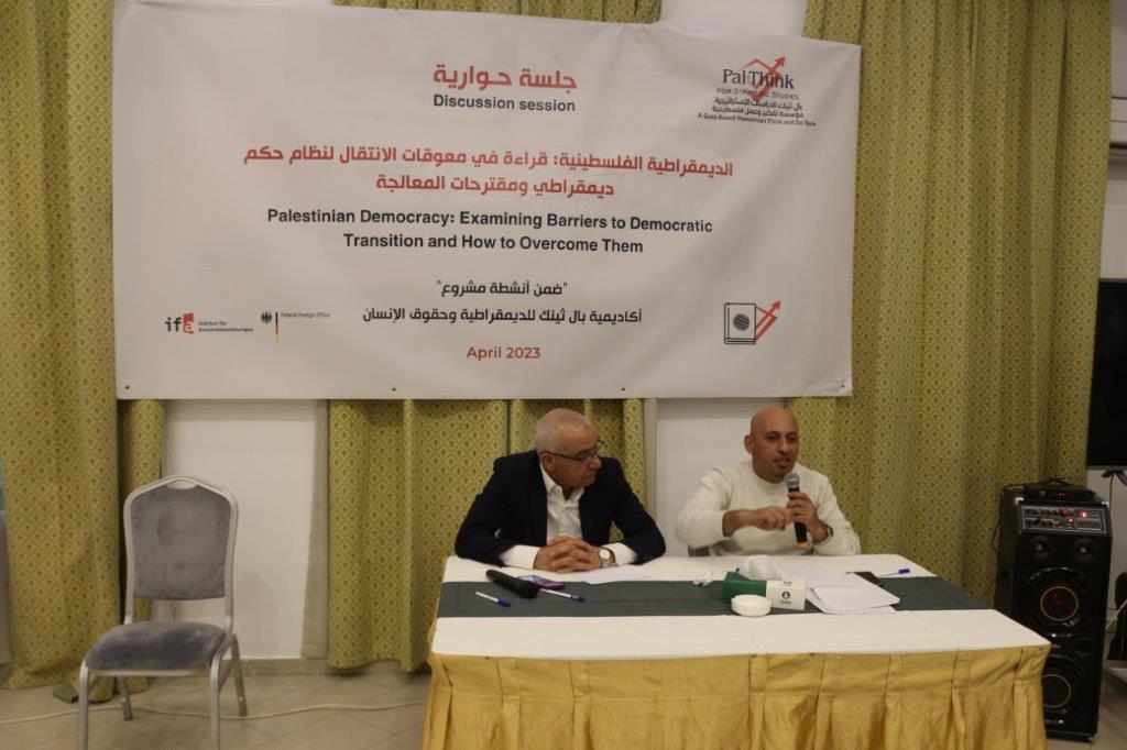 عقدت بال ثينك للدراسات الاستراتيجية أمس الاثنين جلسة حوارية لمناقشة ورقة بحثية بعنوان “الديمقراطية الفلسطينية: قراءة في معوقات الانتقال لنظام ديمقراطي ومقترحات المعالجة” أعدها الباحث في بال ثينك يحيى قاعود، وذلك ضمن أنشطة وفعاليات مشروع “أكاديمية بال ثينك للديمقراطية وحقوق الإنسان – المرحلة الثانية”