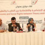 وأعادت تردي الأوضاع الاقتصادية وارتفاع نسب البطالة في فلسطين بشكل عام، وقطاع غزة بشكل خاص والتي وصلت إلى 47٪ في قطاع غزة مقارنة بـ 16٪ في الضفة الغربية، إلى الانقسام الفلسطيني وغياب تطبيق القوانين. واختتمت مداخلتها بمجموعة من التوصيات التي من شأنها النهوض بالحقوق الاقتصادية والاجتماعية، أهمها: إعادة تفعيل العملية الديمقراطية، وانهاء حالة الانقسام، وتشكيل ضغط حزبي ومؤسساتي من أجل توفير الحقوق الاقتصادية في المجتمع الفلسطيني.