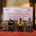 وافتتحت منسقة مشاريع المؤسسة أ. سالي السماك المؤتمر الذي حضره عدد من منظمات المجتمع المدني في شقي الوطن، ومثقفون وباحثون ونشطاء مؤمنون بثقافة اللاعنف.