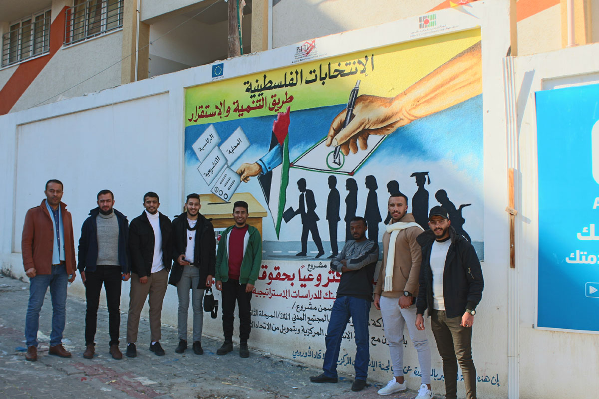بال ثينك تفتتح جدارية بعنوان “الانتخابات الفلسطينية طريق التنمية والاستقرار” في جامعة غزة