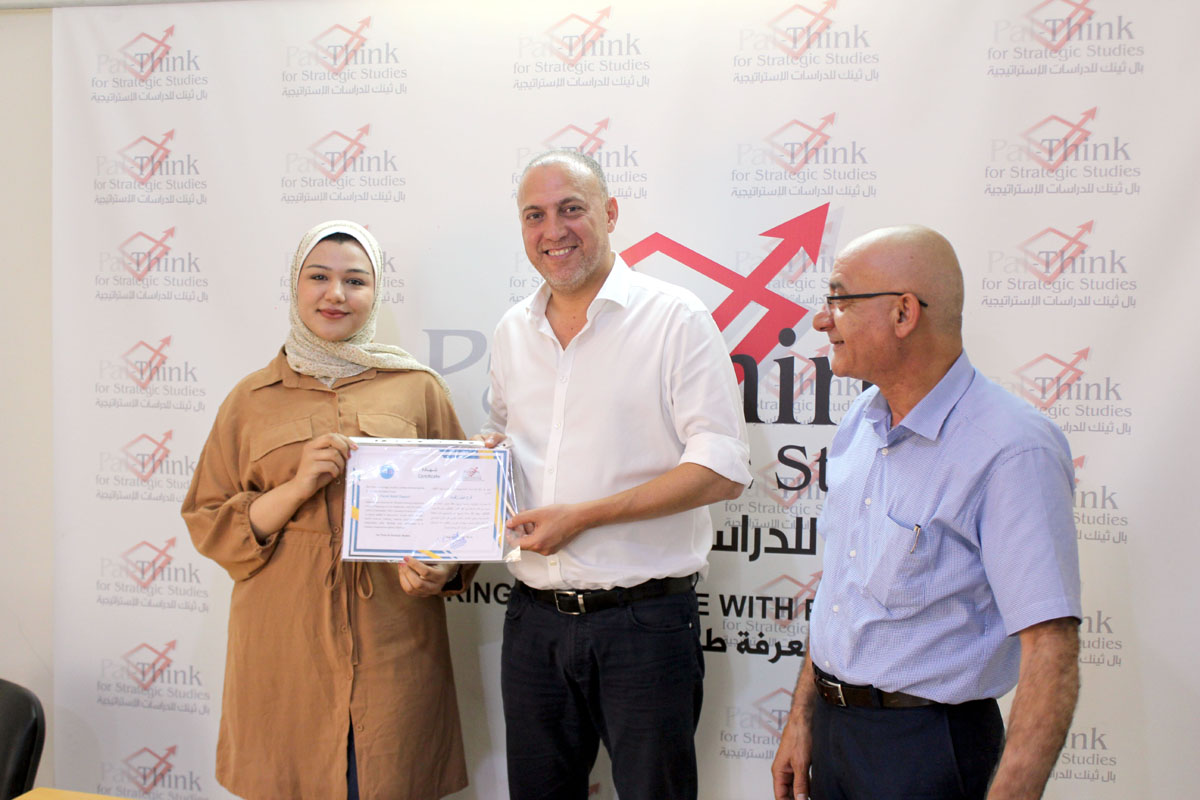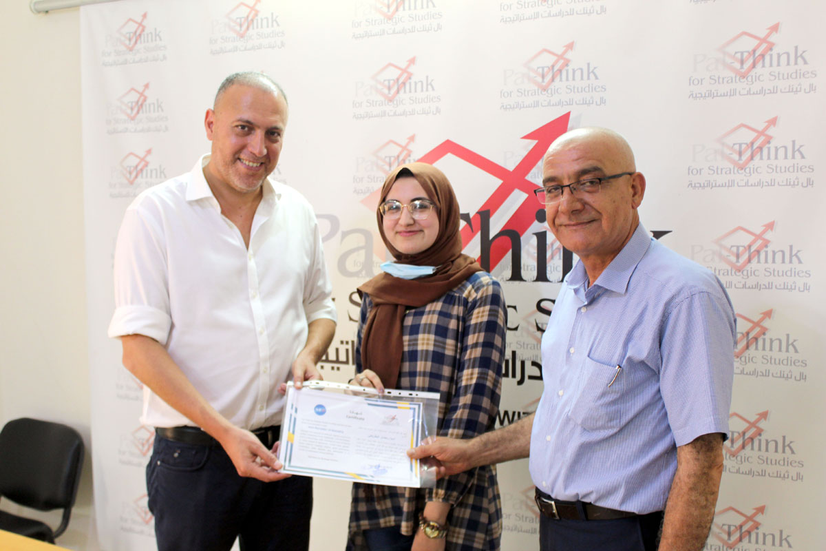 نظمت بال ثينك للدراسات الاستراتيجية لقاء ختامي لمشروع إعداد مثقف مدني، بحضور كلاً من سفير دولة فلسطين في المملكة المتحدة د. حسام زملط، والاستاذ عمر شعبان مدير بال ثينك للدراسات الاستراتيجية، وأعضاء هيئة التثقيف المدني، وذلك في مكتب بال ثينك للدراسات الاستراتيجية يوم الثلاثاء الموافق 29يونيو 2021.
