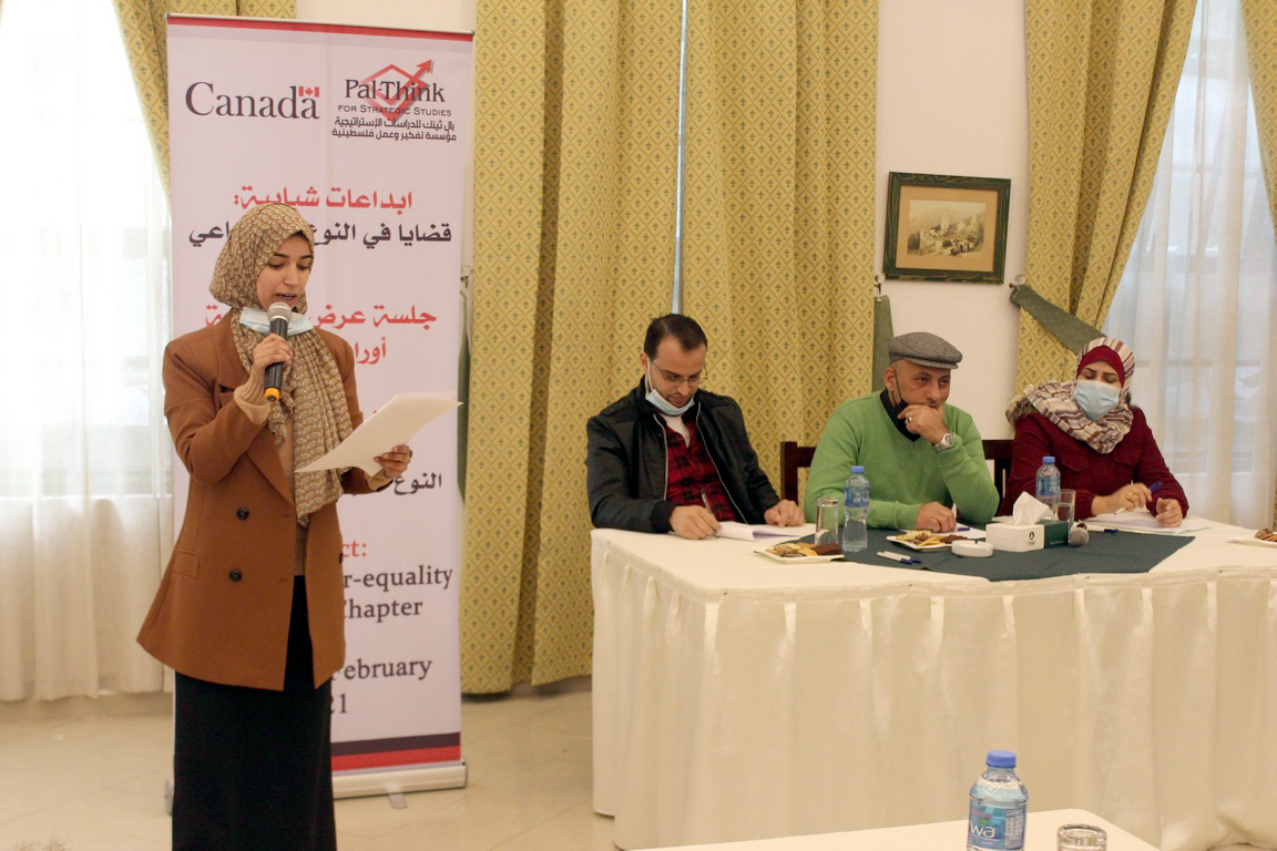 نظمت مؤسسة بال ثينك للدراسات الاستراتيجية ورشة عمل لمناقشة أربع أوراق بحثية تتناول قضايا عن المرأة الفلسطينية، ضمن مشروع “كتابات بحثية في النوع الاجتماعي والنسوي” الممول من حكومة كندا، بحضور الملحق السياسي في الممثلية الكندية أندريا نيكلوس، وبمشاركة عدد من الباحثين والمنظمات والمراكز الحقوقية.