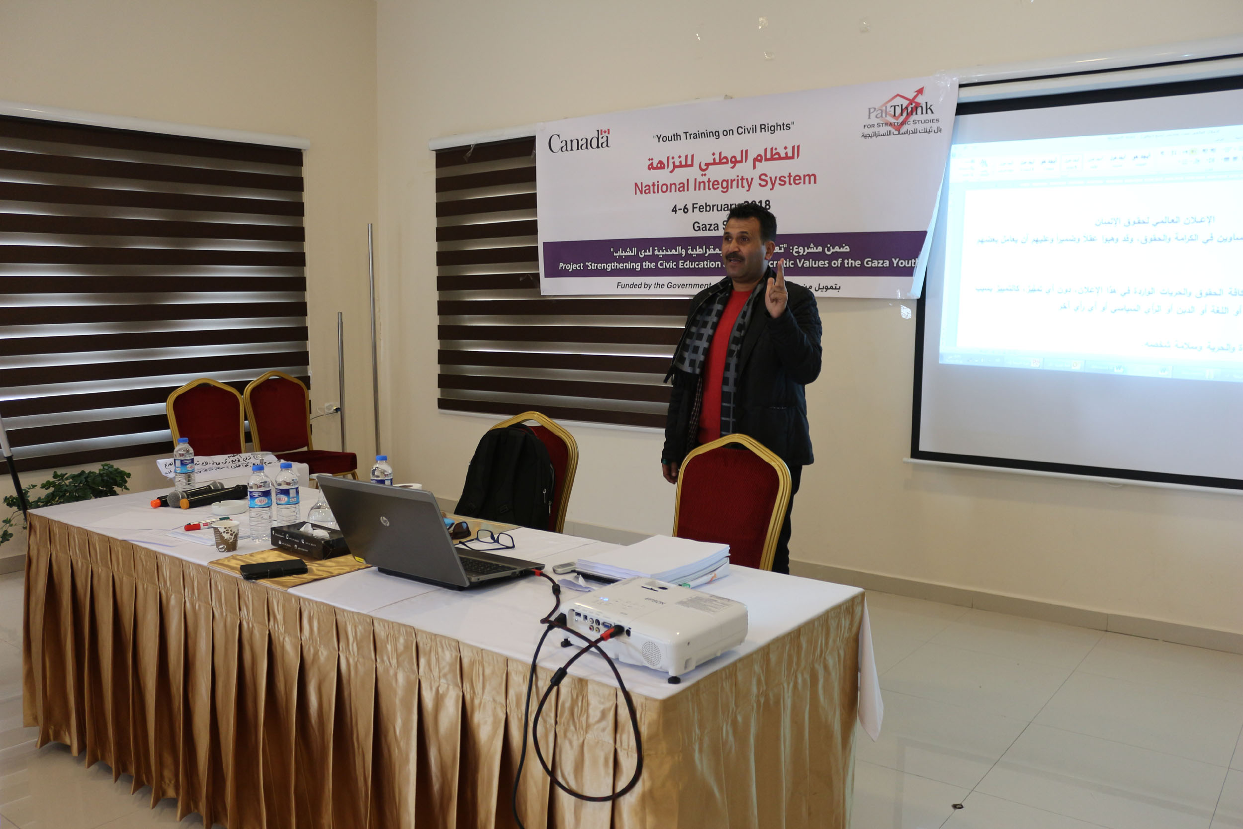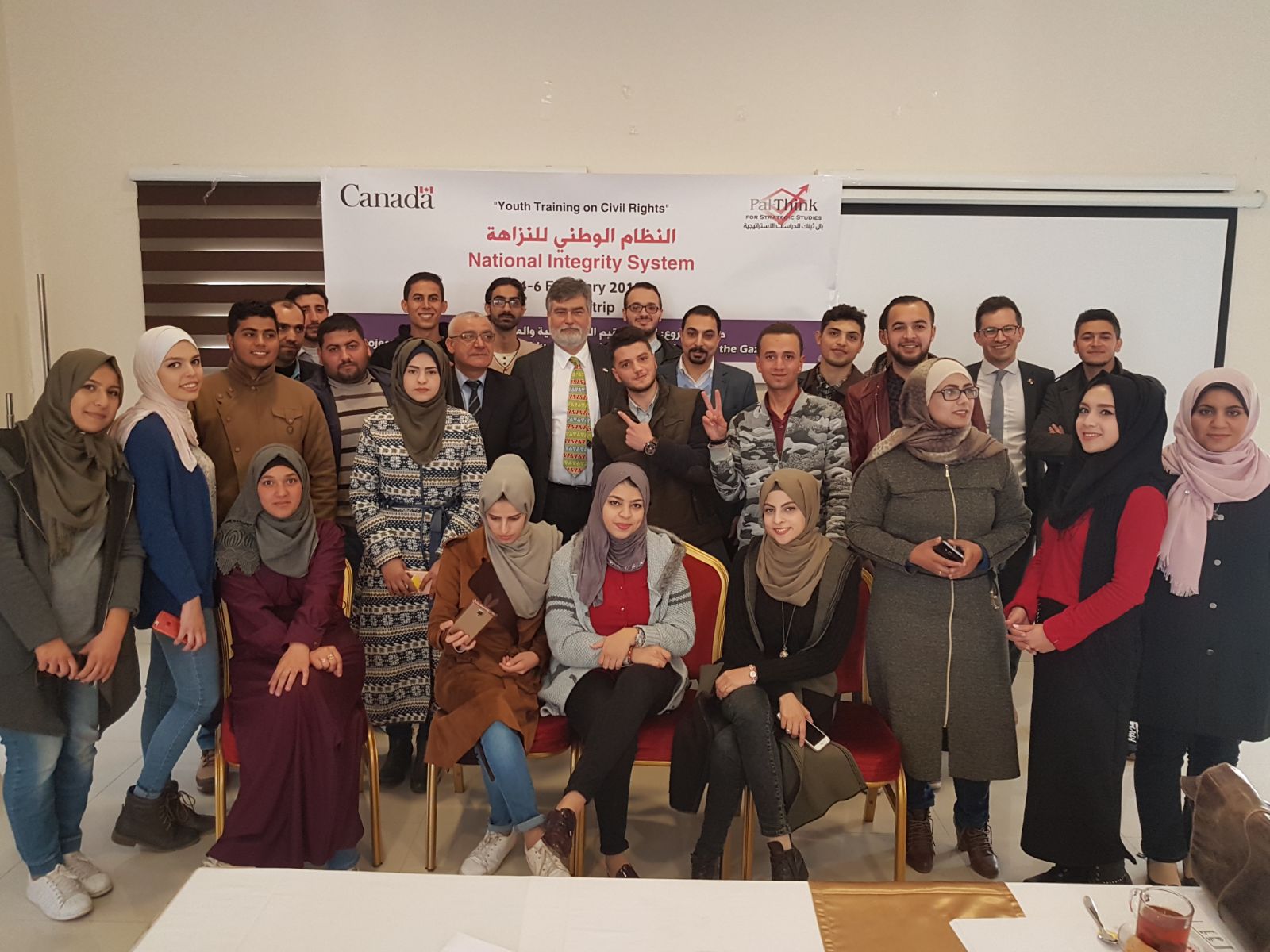 اختتمت “بال ثينك” للدراسات الاستراتيجية تدريب “النظام الوطني للنزاهة” الممول من حكومة كندا ضمن مشروع “تعزيز القيم الديمقراطية والمدنية للشباب الفلسطيني” والذي حضره 25 شاب وشابة من مختلف التخصصات والجامعات الفلسطينية.