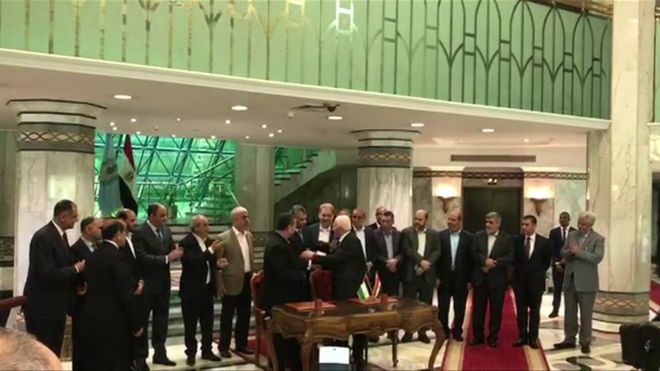 وقعت حركتا “حماس” و”فتح” الخميس (12 أكتوبر/تشرين أول 2017)، على اتفاق لإنهاء الإنقسام الفلسطيني، في القاهرة، بحضور مدير المخابرات العامة المصرية خالد فوزي.