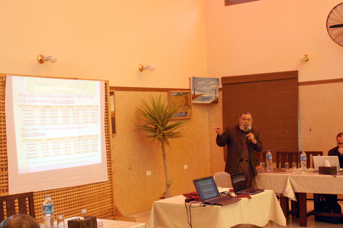 ومن جانبه عرض الدكتور سمير عفيفي رئيس جمعية أصدقاء البيئة وأستاذ البيئة بالجامعة الأسلامية مشروعا تم تنفيذه في مدينة رفح وهو عبارة عن محطة لفرز مكونات النفايات الصلبة وحرق جزء منها بعد استخلاص المكون العضوي وبالتالي يمكن توليد طاقة كهربائية ولكن الفكرة ما زالت في طور البداية ضمن نشاط بحثي بين الجامعة الإسلامية ومؤسسة أصدقاء البيئة في رفح.