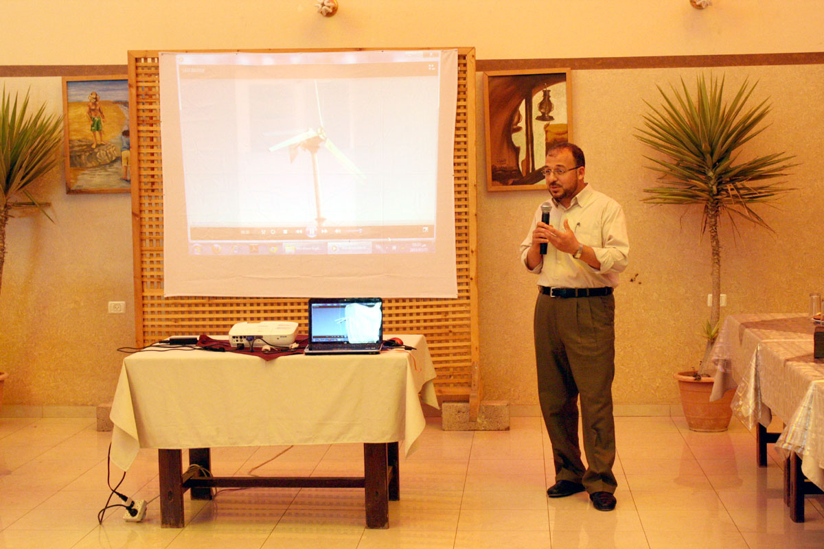 كذلك عرض الدكتور أيمن عياد الأستاذ بكلية الهندسة الميكانيكية في جامعة الأزهر المشروع البحثي لاستخدام طاقة الرياح حيث ان سرعة الرياح الموجودة في غزة لا تساعد كثيرا في أنتاج الطاقة الكهربائية .