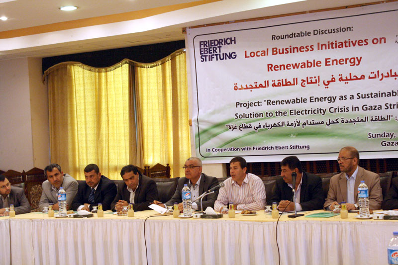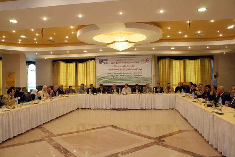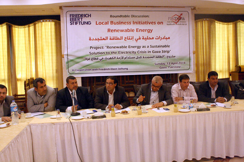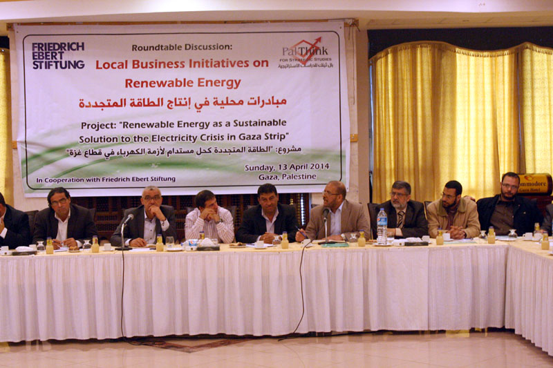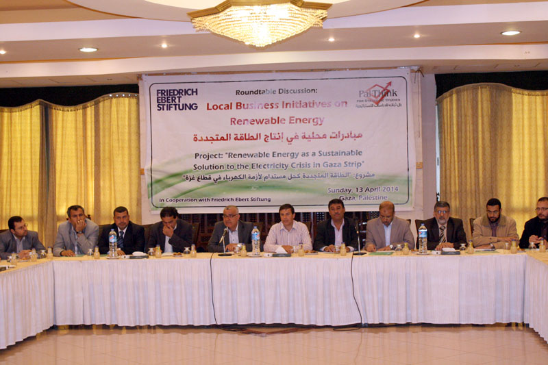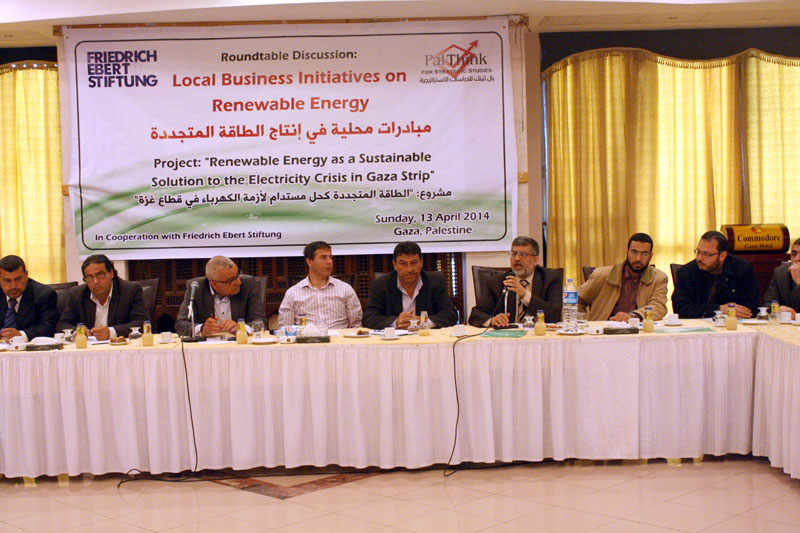 استمرارا للمبادرات المجتمعية في إيجاد طاقة متجددة كحل مستدام لأزمة الكهرباء في قطاع غزة نظمت بال ثينك للدراسات الإستراتيجية بالتعاون مع مؤسسة فريدريتش الألمانية ورشة العمل الثالثة ضمن مشروع “الطاقة المتجددة كحل مستدام لأزمة الكهرباء في قطاع غزة”, حيث ركزت الورشة على عرض مبادرات محلية في إنتاج الطاقة المتجددة، وذلك بمشاركة نخبة من المؤسسات الأكاديمية والقطاع الخاص والحكومي والمجتمع المدني بهدف بحث آفاق تطوير قطاع الطاقة المتجددة وتحفيز الاستثمار في هذا القطاع كقطاع اقتصادي واستراتيجي يحلّ العديد من المشكلات الناجمة عن انقطاع التيار الكهربائي.