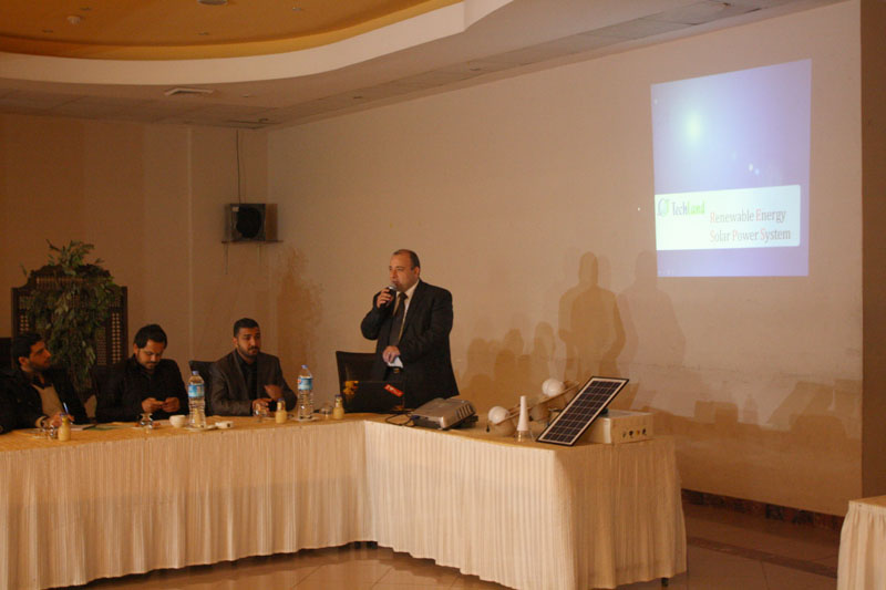 من جهته أكد الدكتور نبيل الصوالحي مدير شركة شمس النهار للطاقة الشمسية أن الطاقة الشمسية بدأت من الستينات، وأن ألمانيا تستخدم 35% من حاجتها للكهرباء من الطاقة المتجددة على الرغم من عدم وجود أي عجز لديها، ولكن من اقتناعها بان الشمس ستكون مصدر الكهرباء بعد حوالي 40 سنة بعد نفاذ العناصر الطبيعية حيث عرض تجارب الشركة والمشاريع التي تم تنفيذها مؤخرا في قطاع غزة مستهدفين كل من شركة جوال وشركة سبيد كليك وشركة نت ستريم وجمعية الحياة وبعض المساجد .