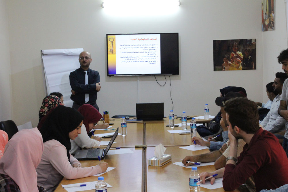 نفذت مؤسسة بال ثينك للدراسات الاستراتيجية محاضرة بعنوان” الدبلوماسية الرقمية الفلسطينية” وذلك ضمن مشروع “منتدى الشباب للسياسة والتنمية”، بالتعاون مع الصندوق الوطني للديمقراطية NED؛ حيث استضافت بال ثينك الدكتور الجامعي في مجال الإعلام والصحافة سامي عكيلة, وذلك بمشاركة فريق مكون من 25 من الشباب (13 اناث:12 ذكور) ضمن الفئة العمرية 18-25 ممن لديهم شغف التعلم حول السياسة والتنمية.