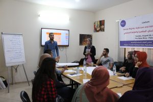 اختتمت د.سامية المحاضرة بنشاط يعتمد على اختبار فهم بنود حقوق الانسان حيث تم اشراك الشباب وعمل جلسة نقاش للإجابة عن الاسئلة كما وتضمن ذلك عرض ملخص عن الاعلان العالمي لحقوق الانسان واعطاء أمثلة من الواقع عن كل بند من الميثاق والانتهاكات التي تقابله.