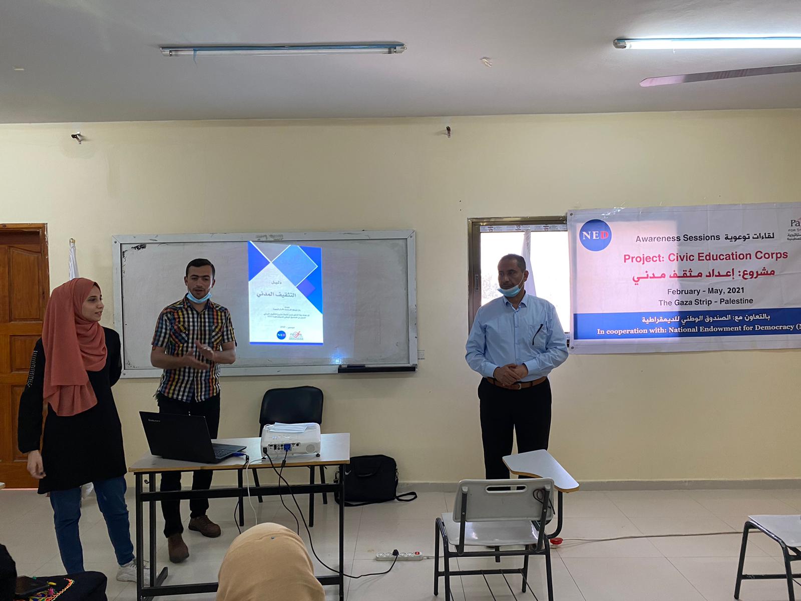 وكان اللقاء الأول، الذي ادارته عضوة لجنة التثقيف المدني الطالبة آية عاشور، بعنوان “العنف المبني على النوع الاجتماعي وتأثيره على المجتمع الفلسطيني”، وذلك يوم الاثنين الموافق 26 أبريل 2021م، في جمعية الشباب والبيئة بمدينة دير البلح والتي تحدثت خلال اللقاء حول تعريف العنف المبني على النوع الاجتماعي وتحليل أسبابه في المجتمع الفلسطيني وأشكاله، كما وتحدثت حول أنواع العنف المبني على النوع الاجتماعي، وآليات التعامل معه.