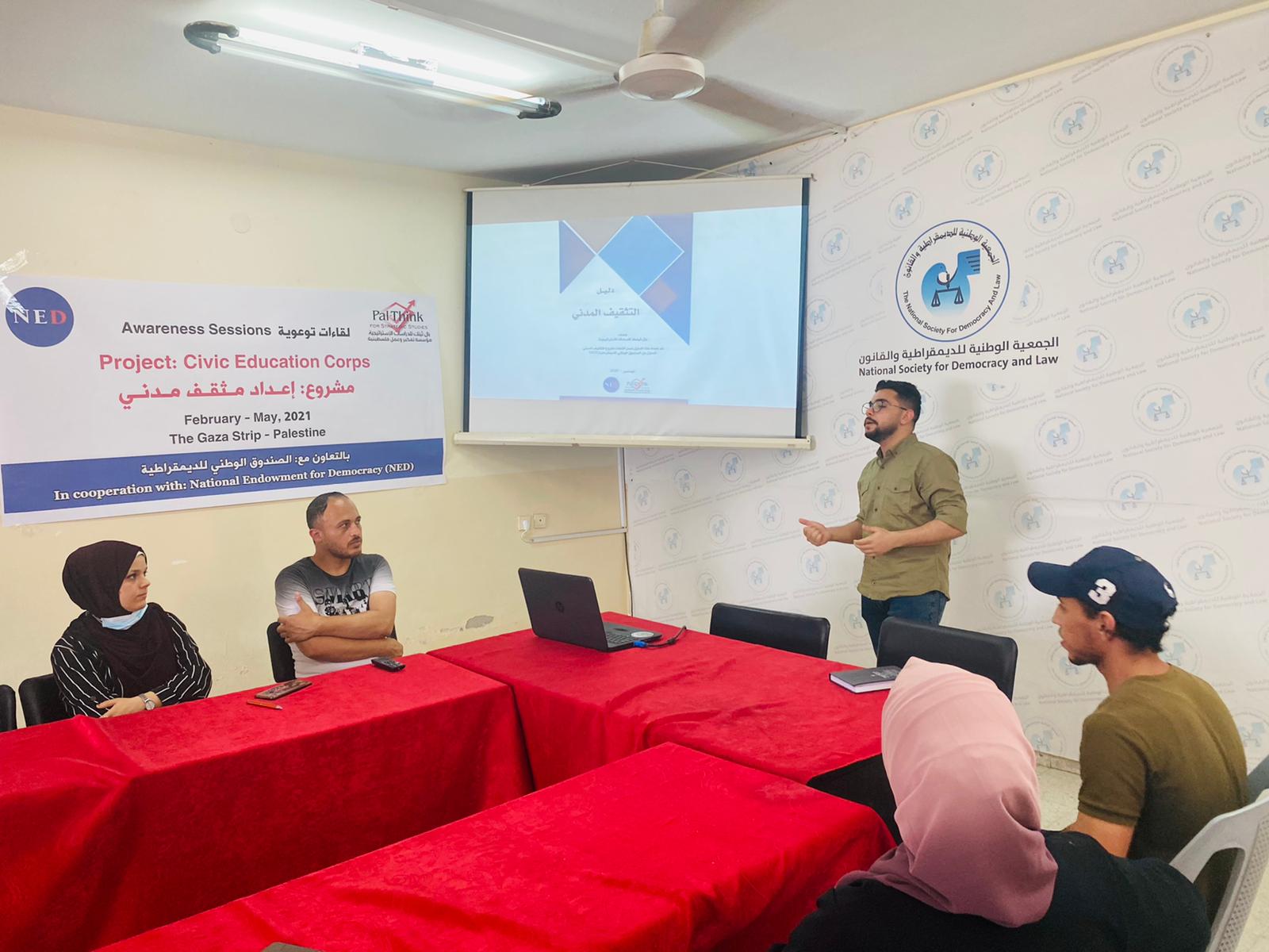 وفيما يتعلق باللقاء الخامس فقد كان بعنوان “الديمقراطية وحقوق الإنسان”، وأداره عضو هيئة التثقيف المدني أسامة نعيم، وذلك يوم الأربعاء الموافق 2 يونيو 2021م، بجمعية تطوير الأسرة في بيت حانون. وتحدث نعيم خلال اللقاء حول تعريف الديمقراطية والإطار القانوني الناظم لها ومقوماتها وأهدافها ومعيقاتها، بالإضافة إلى تركيزه على مفهوم المشاركة السياسية وأهميته في المجتمع الفلسطيني، كما وتحدث حول حقوق الانسان تعريفها و تطورها ومبادئها ومكونات الشرعة الدولية لحقوق الإنسان.