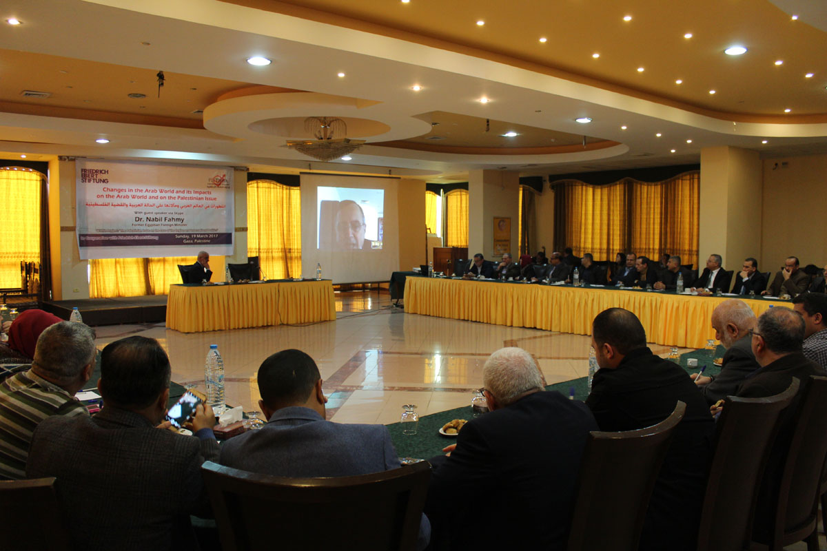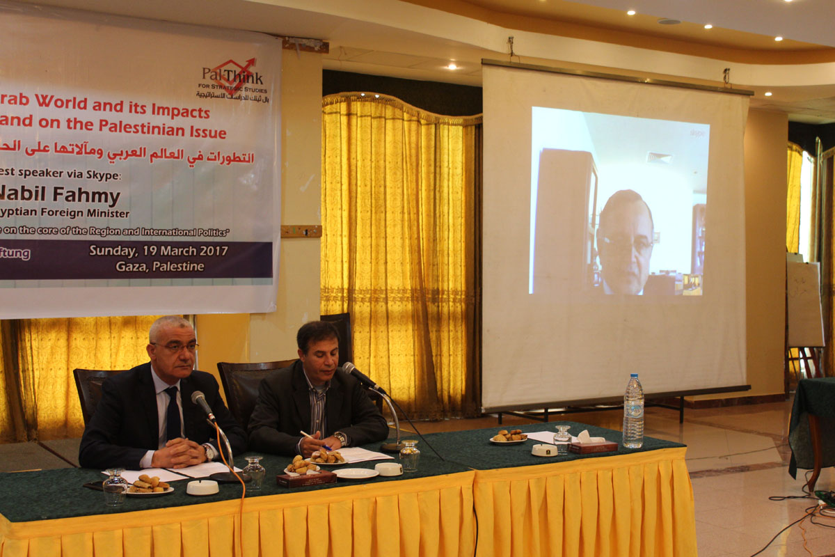 وجاءت أقوال فهمي، اليوم الأحد، عبر سكايب من القاهرة خلال ندوة نظمها مركز بال ثينك للدارسات الاستراتيجية بالتعاون مع مؤسسة فريدريش أيبرت الألمانية، التي رحب مديرها أسامة عنتر بالضيف المصري الكبير، تحت عنوان: “التطورات في العالم العربي ومالاتها على الحالة العربية والقضية الفلسطينية في فندق الكومودور غرب مدينة غزة.
