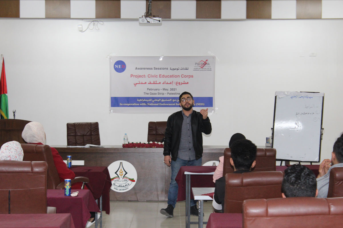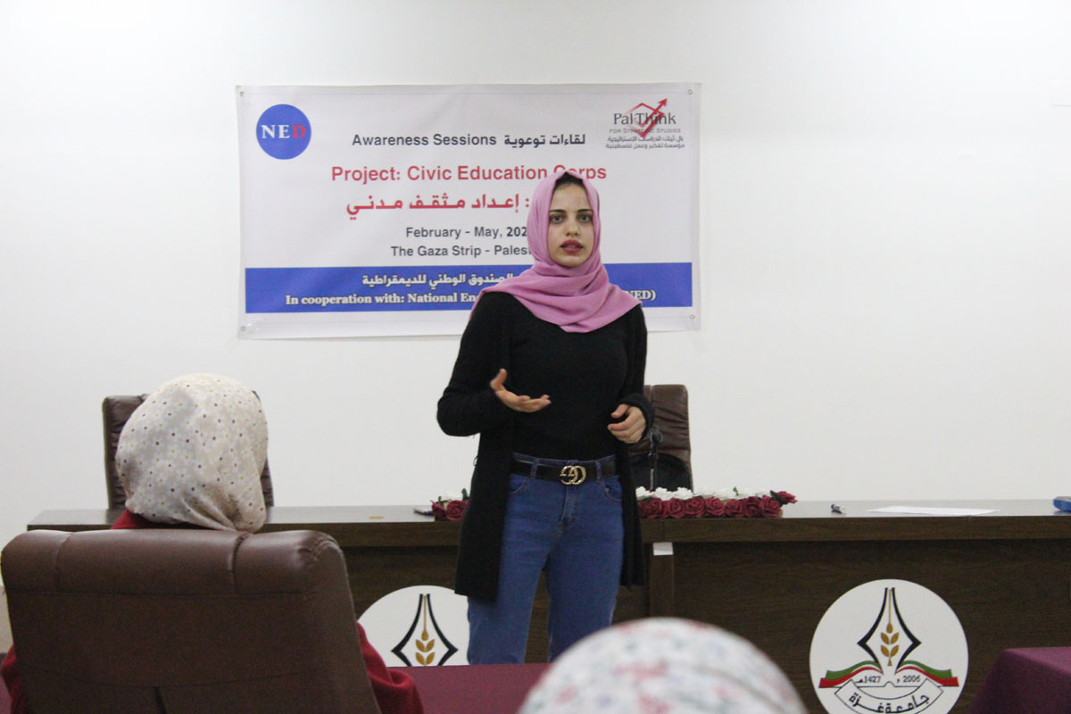نفذت هيئة التثقيف المدني، في بال ثينك للدراسات الإستراتيجية، أول ورشة توعوية وجاهية بعنوان “مبادئ الديمقراطية”، وذلك يوم الأحد الموافق 14 فبراير2021م، في جامعة غزة، وذلك ضمن مشروع “إعداد مثقف مدني”، والذي تنفذه بال ثينك للدراسات الاستراتيجية بتمويل من الصندوق الوطني للديموقراطية (NED).