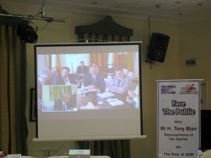 نظم بال ثينك للدراسات الإستراتيجية الحلقة الثالثة من برنامج واجه الجمهور بالتعاون مع مؤسسة فريديش إيبرت الألمانية، حيث استضافت الحلقة عبر الفيديو كونفرنس السيد توني بلير ممثل اللجنة الرباعية، وتأتي هذه الحلقة تحت عنوان دور اللجنة الرباعية في رفع الحصار عن غزة استمراراً لمجهودات بال ثينك نحو تعزيز الحوار البناء داخل المجتمع الفلسطيني وربطه مع صناع القرار محلياً ودولياً.