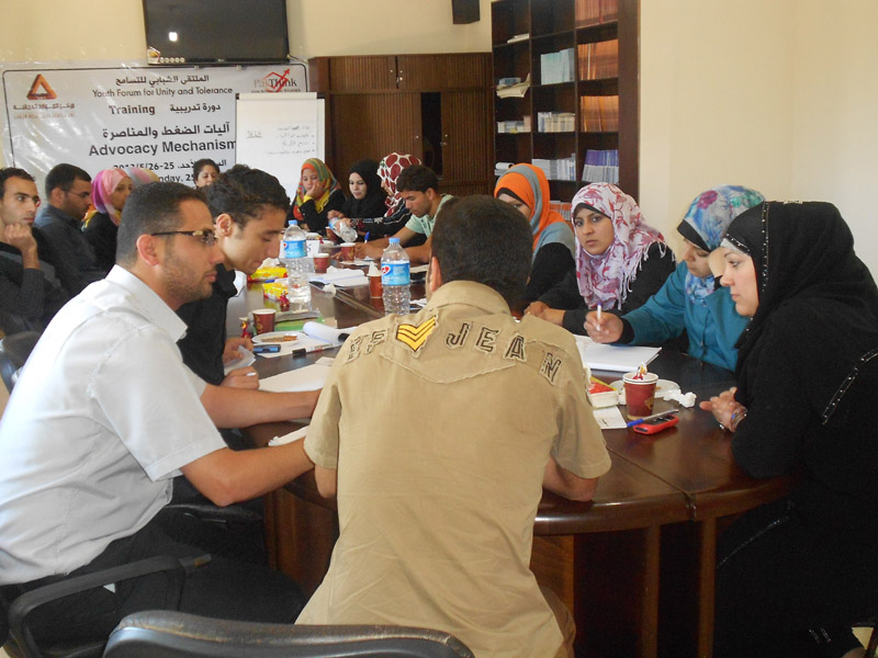 تحت عنوان آليات الضغط والمناصرة اختتم أمس مركز الموارد العمالية بغزة وبالشراكة مع الملتقى الشبابي للتسامح في بال ثنك للدراسات الإستراتيجية دورة تدريبية استمرت لمدة يومين بواقع 12 ساعة تدريبية استهدفت 18مشاركا من الشباب يمثلون نقابات عمالية وتجمعات شبابية من جميع محافظات قطاع غزه .