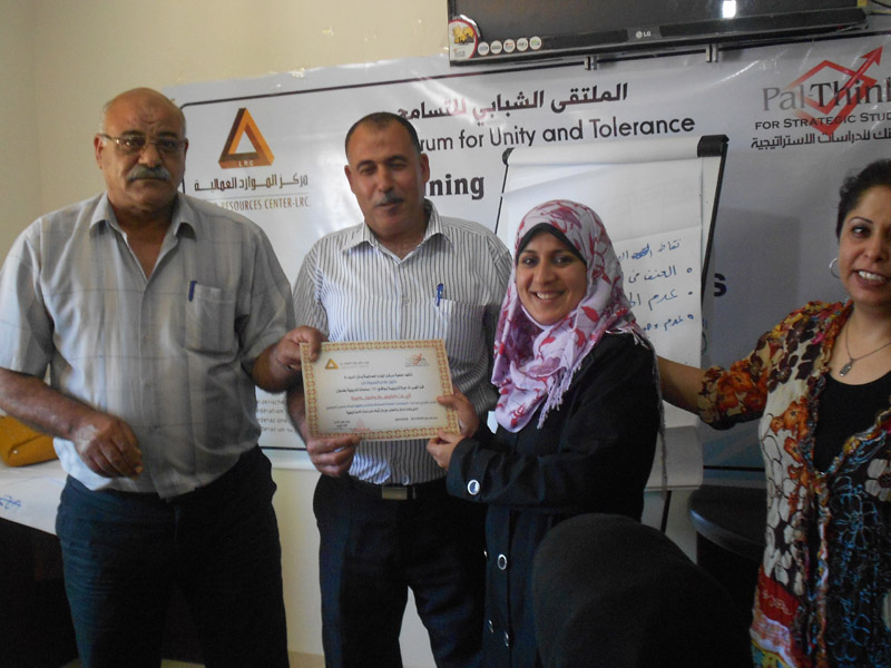 وفي نهاية الدورة تم توزيع الشهادات والمواد التدريبية على المشاركين بحضور السيد عبد القادر أبو مهادي عن مركز الموارد والسيد إبراهيم الغندور من بال ثينك والسيد عبد الرزاق حرارة عن اتحاد اللجان العمالية المستقلة حيث قدم احد المشاركين كلمة شكر للمركز لما يقدمه من دعم وإسناد للشباب والعمال متمنيا أن يكون هناك المزيد من الدورات التي تساهم في تطوير قدرات الشباب وإكسابهم مهارات جديدة