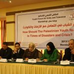 نظم الملتقى الشبابي للتسامح بمؤسسة بال ثينك ورشة عمل بعنوان دور الشباب في التعامل مع الازمات والكوارث وذلك بمشاركة اكثر من 250 مشارك من جميع شرائح وأطياف المجتمع الفلسطيني وبالتحديد فئة الشباب في فندق الكمودور بمدينة غزة .