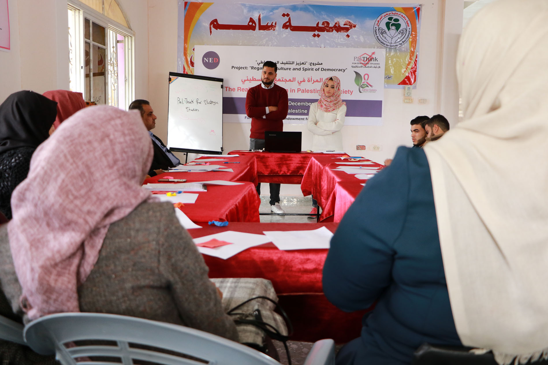 نفذت مؤسسة بال ثينك للدراسات الاستراتيجية ورشة عمل بعنوان “واقع المرأة في المجتمع الفلسطيني” ضمن مشروع “تعزيز التثقيف الديمقراطي” الممول من الصندوق الوطني للديمقراطية ((NED، في جمعية ساهم لرعاية مرضى السرطان في رفح بحضور أكثر من 30 طالب وطالبة من تخصصات جامعية مختلفة، حيث يهدف المشروع إلى رفع وعي الشباب بالديمقراطية وأسسها وما يتعلق بها من حقوق تساهم في بناء قدرات الشباب وتأهيلهم للمشاركة في صنع القرار والرقي بالمجتمع.