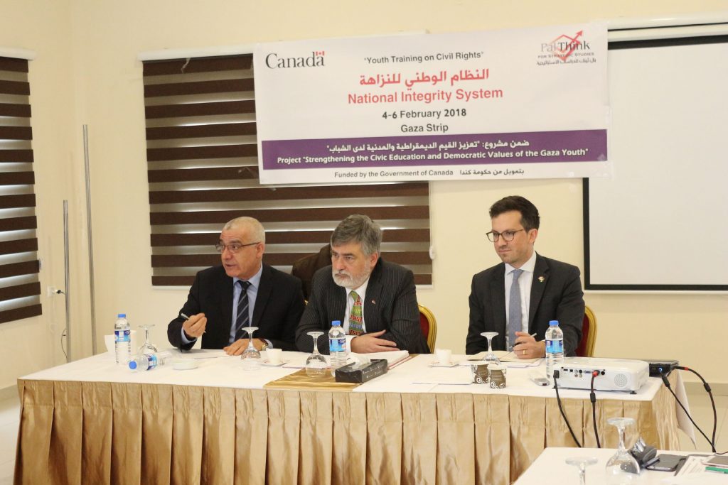 اختتمت “بال ثينك” للدراسات الاستراتيجية تدريب “النظام الوطني للنزاهة” الممول من حكومة كندا ضمن مشروع “تعزيز القيم الديمقراطية والمدنية للشباب الفلسطيني” والذي حضره 25 شاب وشابة من مختلف التخصصات والجامعات الفلسطينية. حيث رحب السيد عمر شعبان مدير مؤسسة “بال ثينك” للدراسات الاستراتيجية بممثل كندا لدى السلطة الفلسطينية السيد دوغلاس سكوت براودفوت، ورئيس القسم السياسي السيدايان أندرسون […]