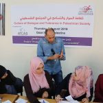 وأشار الى أهمية مساهمة الجميع في نشر مثل هده القيم وأوضح أنه على كل شخص أن يبدأ بنفسه وأن لا ينتظر الحل بل أن يكون جزء من الحل وليس المشكلة حيث قام بتقسيم الشباب الى 3 مجموعات تمثل الجهات المسؤولة عن التغيير وهي الفرد والأسرة والمجتمع، وقد أبدى المشاركون اهتماما لافتا بالمحاضرة حيث اقترح المشاركون العديد من الحلول التي من شأنها التقليل من المشاكل و تعزيز ثقافة الحوار والتسامح في المجتمع الفلسطيني منها اهتمام الاسرة بابنائها مند الصغر وتاسيسهم على الاخلاق الحميدة كاحترام الاخرين وتقبل اختلافاتهم بالاضافة الى عمل ورشات توعية لجميع فئات المجتمع عن مفهوم الحوار والتسامح، والاستعانة بالاعلام ووسائل التواصل الاجتماعي لنشر ثقافة الحوار والتسامح.