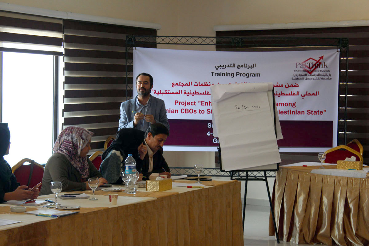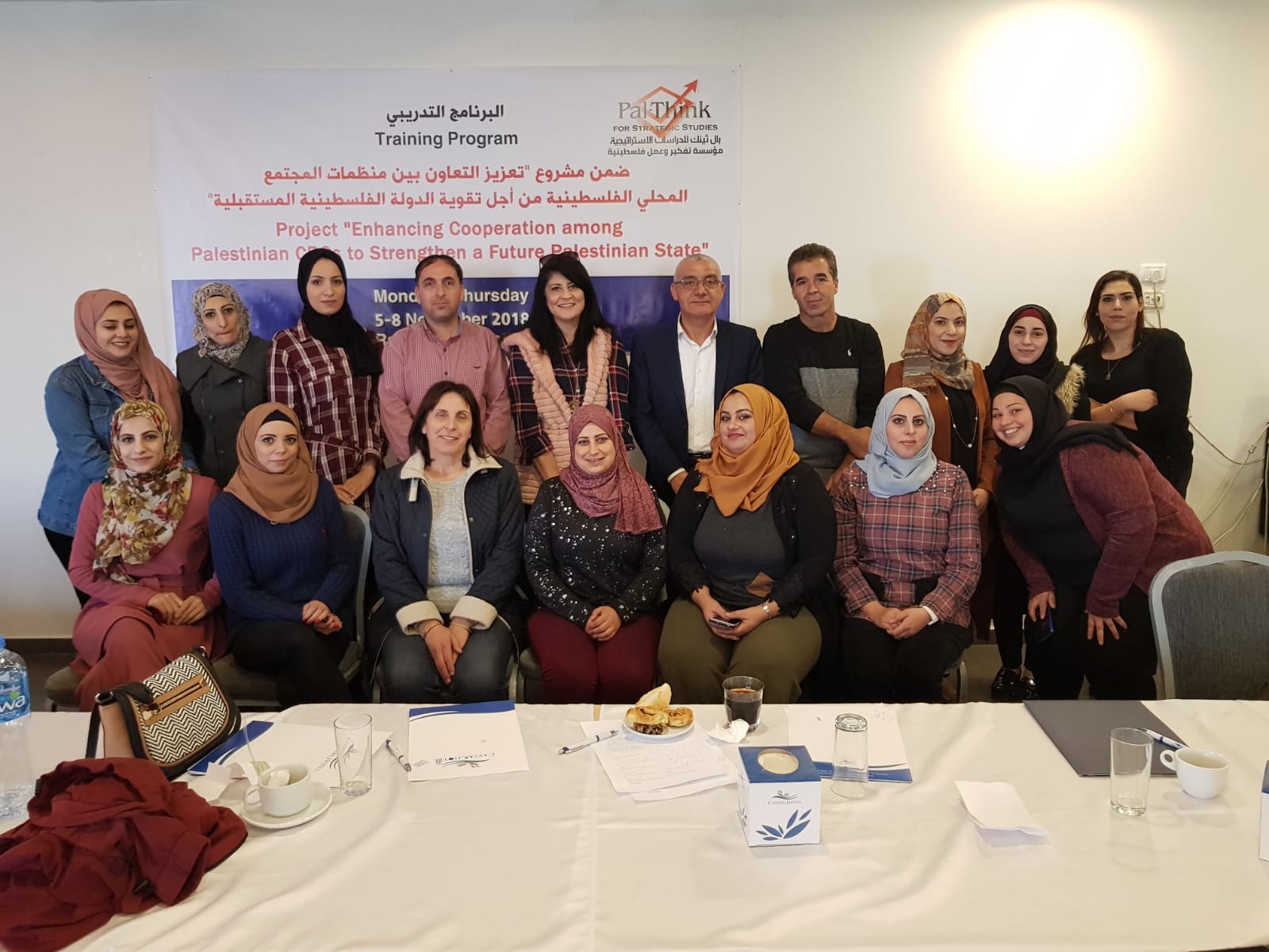 اختتمت مؤسسة بال ثينك للدراسات الاستراتيجية برنامجاً تدريبياً في مدينتي غزة ورام الله ، ضمن المرحلة الأولى لمشروع “تعزيز التعاون بين منظمات المجتمع المحلي الفلسطينية من أجل بناء دولة فلسطين المستقبلية “، و الذي يهدف الى تعزيز العمل والتفاعل بين منظمات العمل الأهلي على المستوى الوطني من خلال تنفيذ مبادرات تناقش التحديات والقضايا التي تواجه المجتمع الفلسطيني وتقديم رؤى علمية ومقترحات سياسياتية تدعم تجاه بناء الدولة الفلسطينية، وذلك بمشاركة 34 مؤسسة من مؤسسات العمل الأهلي في المحافظات الشمالية والجنوبية.