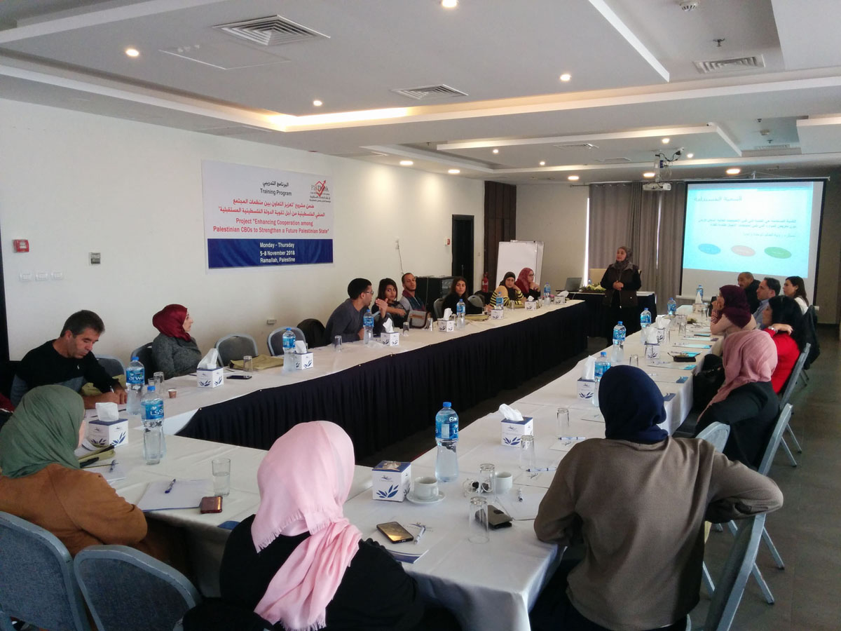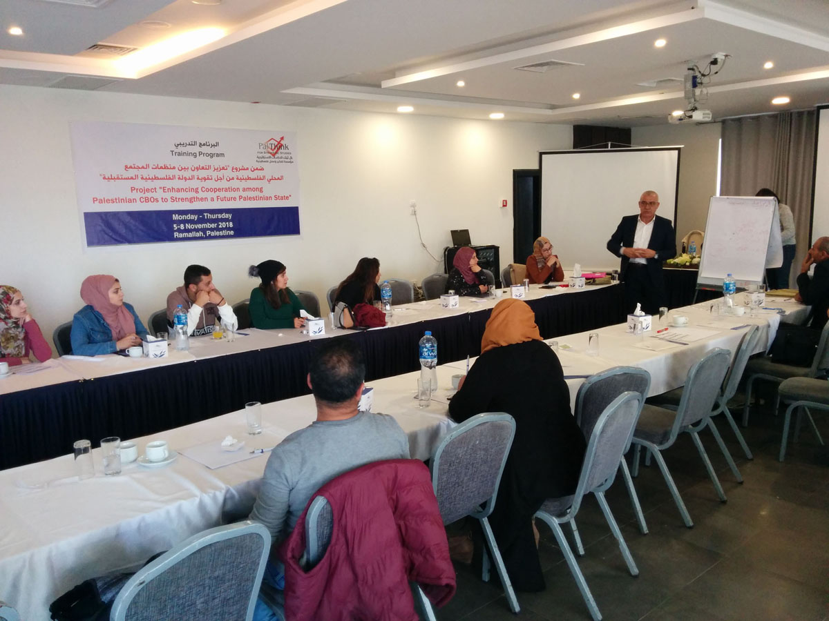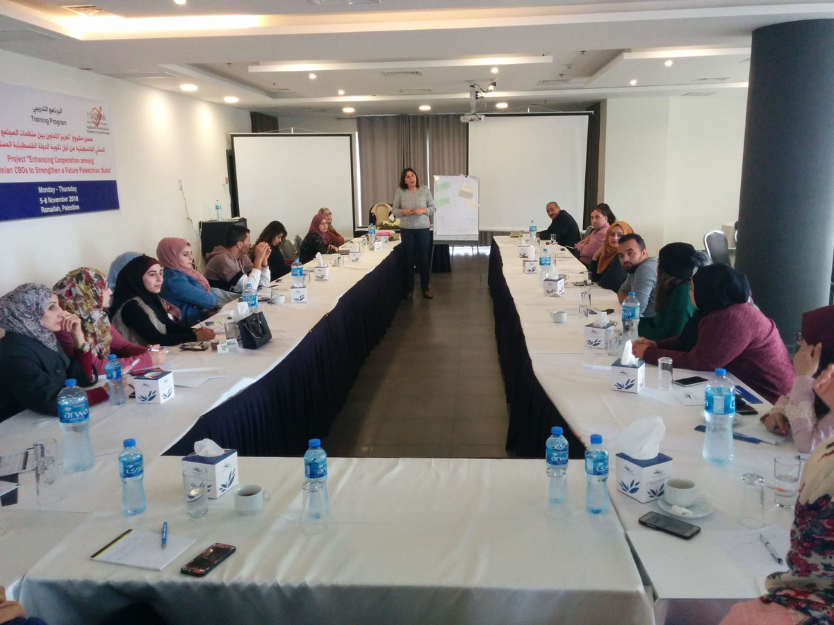 واستهدف التدريب الأفراد القائمين على تنفيذ المبادرات ضمن هذا المشروع من طواقم العمل في المؤسسات الشريكة ، لتطوير قدرات المؤسسات الأهلية في المساهمة الايجابية في بناء مجتمع ودولة فلسطينية متقدمة. واستمر التدريب لمدة 5 أيام في مدينة غزة ، و4 أيام في مدينة رام الله ، على أيدي مدربين أكفاء تناولوا عدة مواضيع في إدارة المشاريع ،حقوق الانسان ، قضايا المرأة والجندر، القانون والدستور الفلسطيني ، التنمية المجتمعية وتمكين الشباب، أسس ومبادئ كتابة الأوراق البحثية ،كتابة التقارير الصحفية ، السوشيال ميديا، حيث ركز البرنامج التدريبي على تزويد المشاركين بالمبادئ الأساسية ضمن هذه المواضيع ، بما يمكنهم من إدماج هذه المبادئ في أنشطتهم في كافة المشاريع الحالية ولمستقبلية ، أيضا خلال تنفيذ مبادراتهم لتحقق أهدافها المتوقعة، حيث تأتي هذه المبادرات في المرحلة الثانية من المشروع.