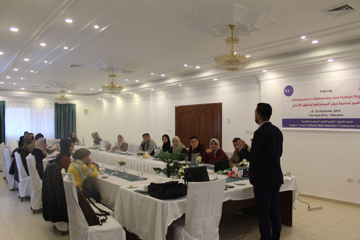 وافتتح التدريب المدرب بلال النجار بالترحيب بالمتدربين. وقال: “إن أهمية التدريب تأتي من أهمية تمكين الشباب وتوسيع معرفتهم في الديمقراطية وحقوق الانسان، وعلى الشباب أن يَعُوا حقوقهم ليطالبوا بها بالطرق القانونية. سنحرص أيضاً على أن يكون هناك تطبيق عملي”.