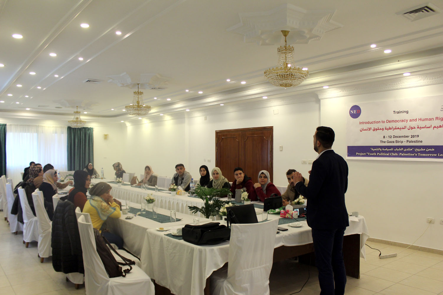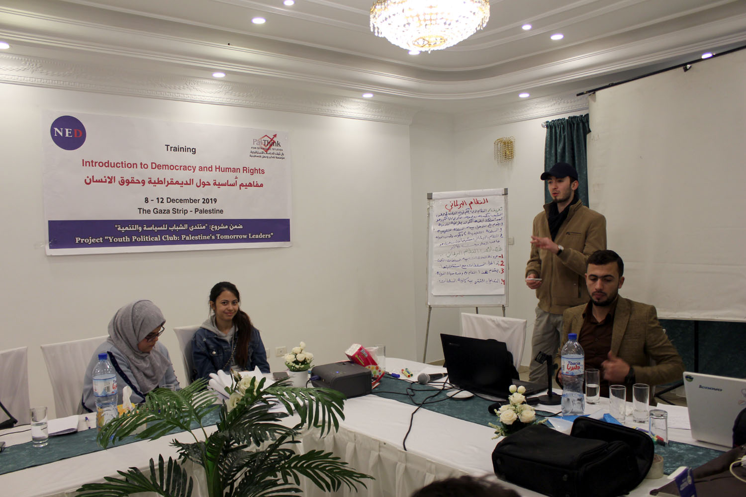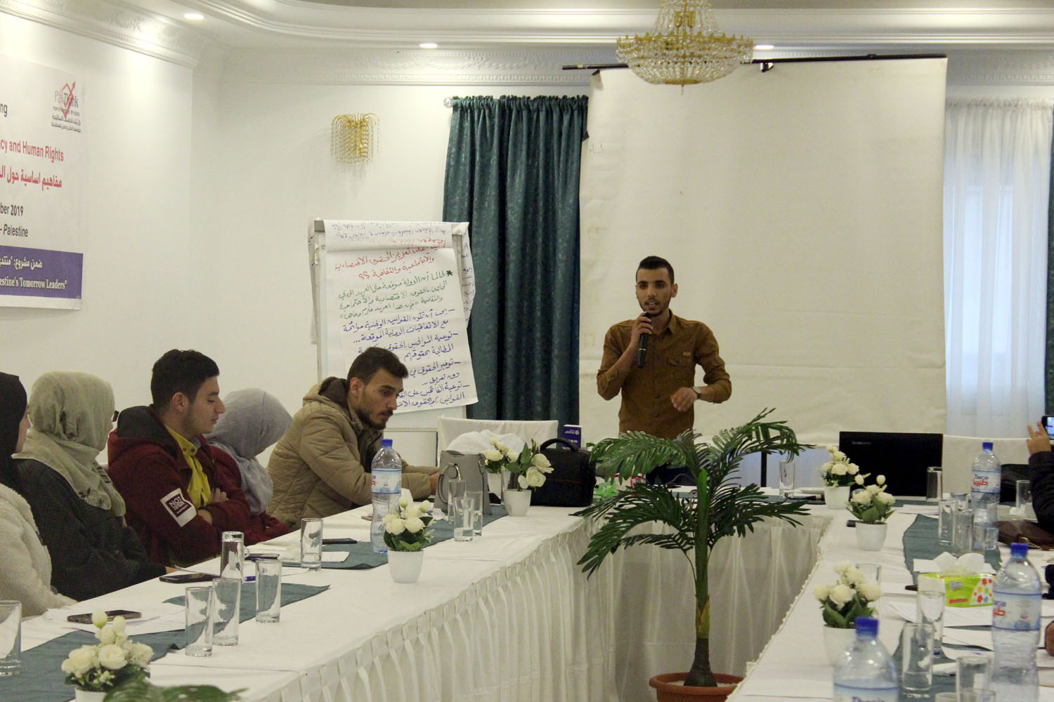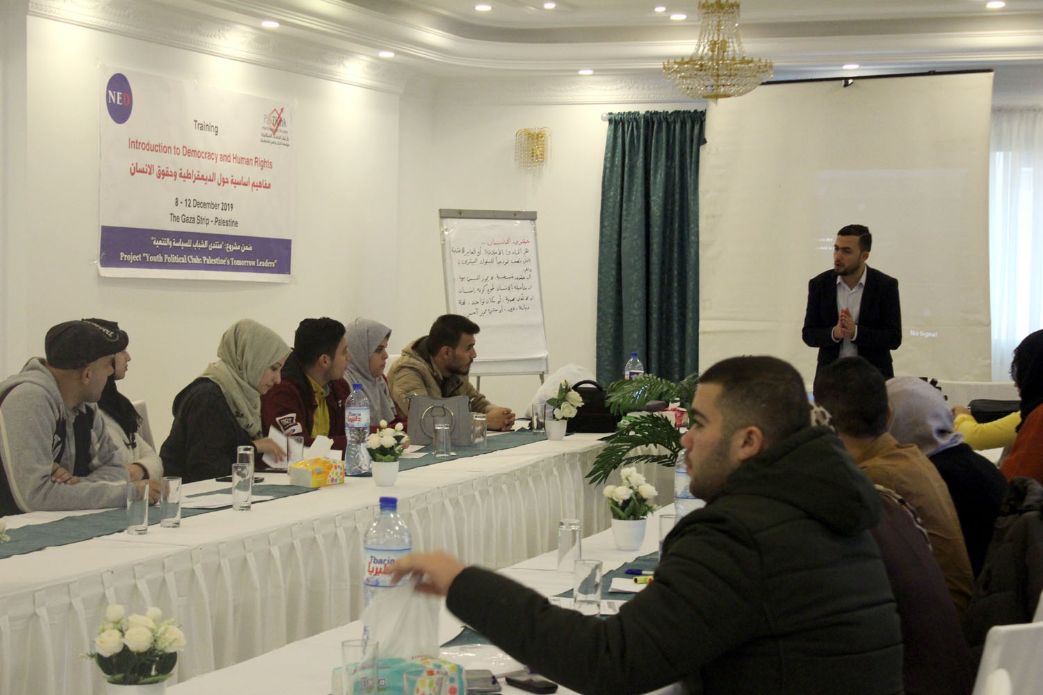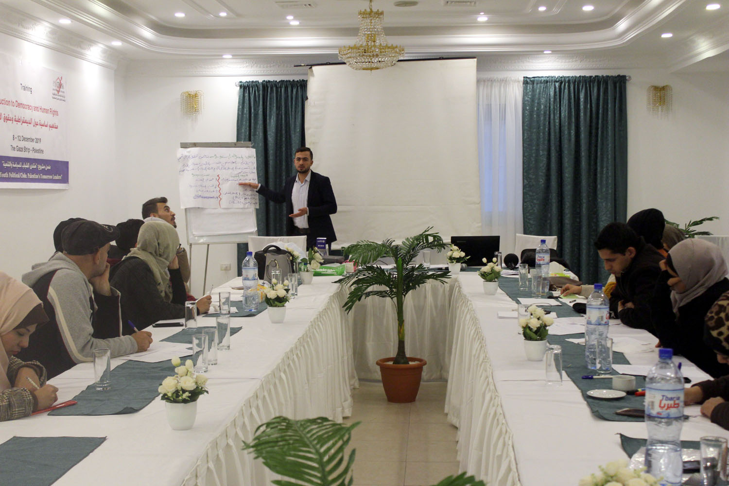 وتعرف المتدربون في اليوم الأول على نشأة وتطور حقوق الانسان والشرعة الدولية لحقوق الإنسان، والتزامات الدولة تجاه مواطنيها، وفي اليوم الثاني، على مفاهيم الديمقراطية ومقوماتها وأنواع النظم السياسية وعلى النظام السياسي الفلسطيني وتعقيداته، وأخيراً على مهارات الضغط والمناصرة في مجال الديمقراطية وحقوق الإنسان.