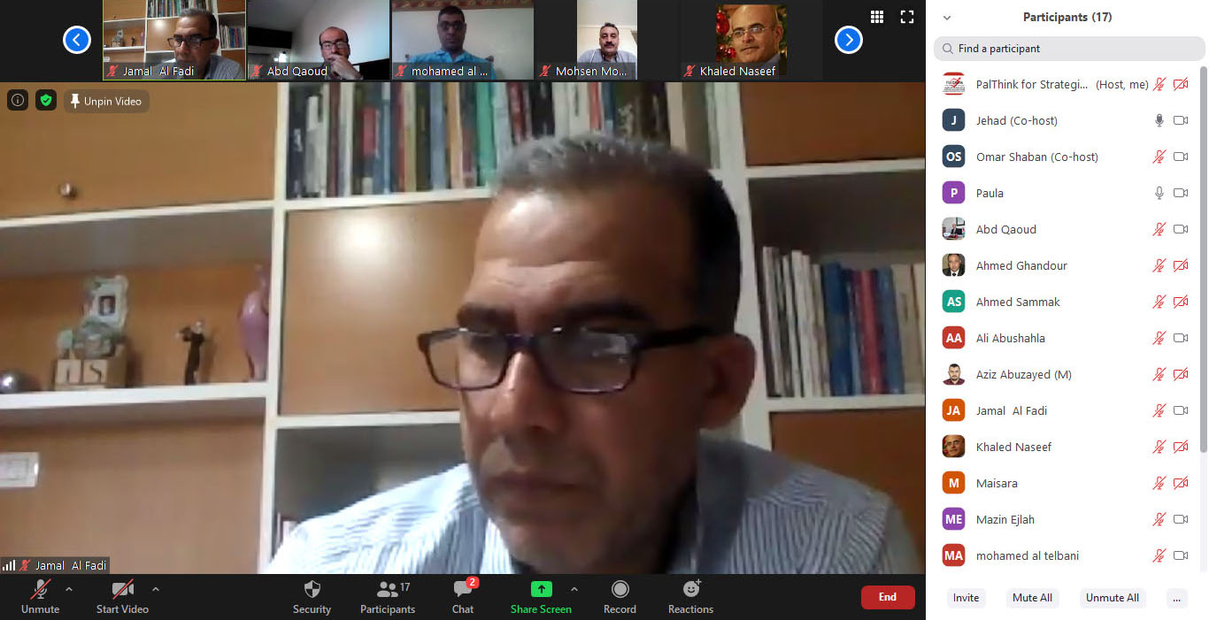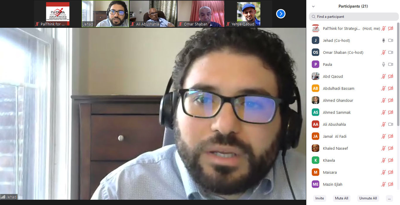 وافتتح اللقاء مدير مؤسسة “بال ثينك” أ. عمر شعبان بالترحيب بالمشاركين، وقال: ” إن بال ثينك مؤسسة فلسطينية مستقلة تعمل من فلسطين، وتعقد لقاءات دورية مع شركاء وخبراء من أنحاء العالم. و ذلك ضمن جهود “بال ثينك” المستمرة منذ عام 2007 لنشر المعرفة بين أطياف المجتمع الفلسطيني حول ما يجري في العالم.