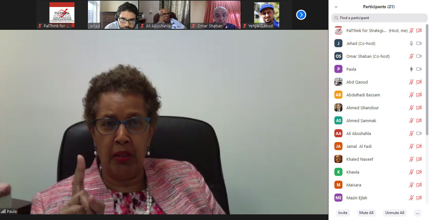 نظمت مؤسسة بال ثينك للدراسات الاستراتيجية هذا الاسبوع لقاء حواريا بعنوان “ماذا يحدث في أمريكا: ملاحظات من الميدان”، عبر برنامج الزوم Zoom””، استضافت فيه الحقوقية الأمريكية باولا رودريك الناشطة في مجموعة “سود من أجل فلسطين – Black4Palestine”، والباحث جهاد أبو سليم للحديث عن مظاهرات السود في أمريكا، بمشاركة نخبة من المثقفين والباحثين، وذلك ضمن جهود “بال ثينك” في نشر المعرفة وآخر التطورات الجارية في المنطقة والعالم.