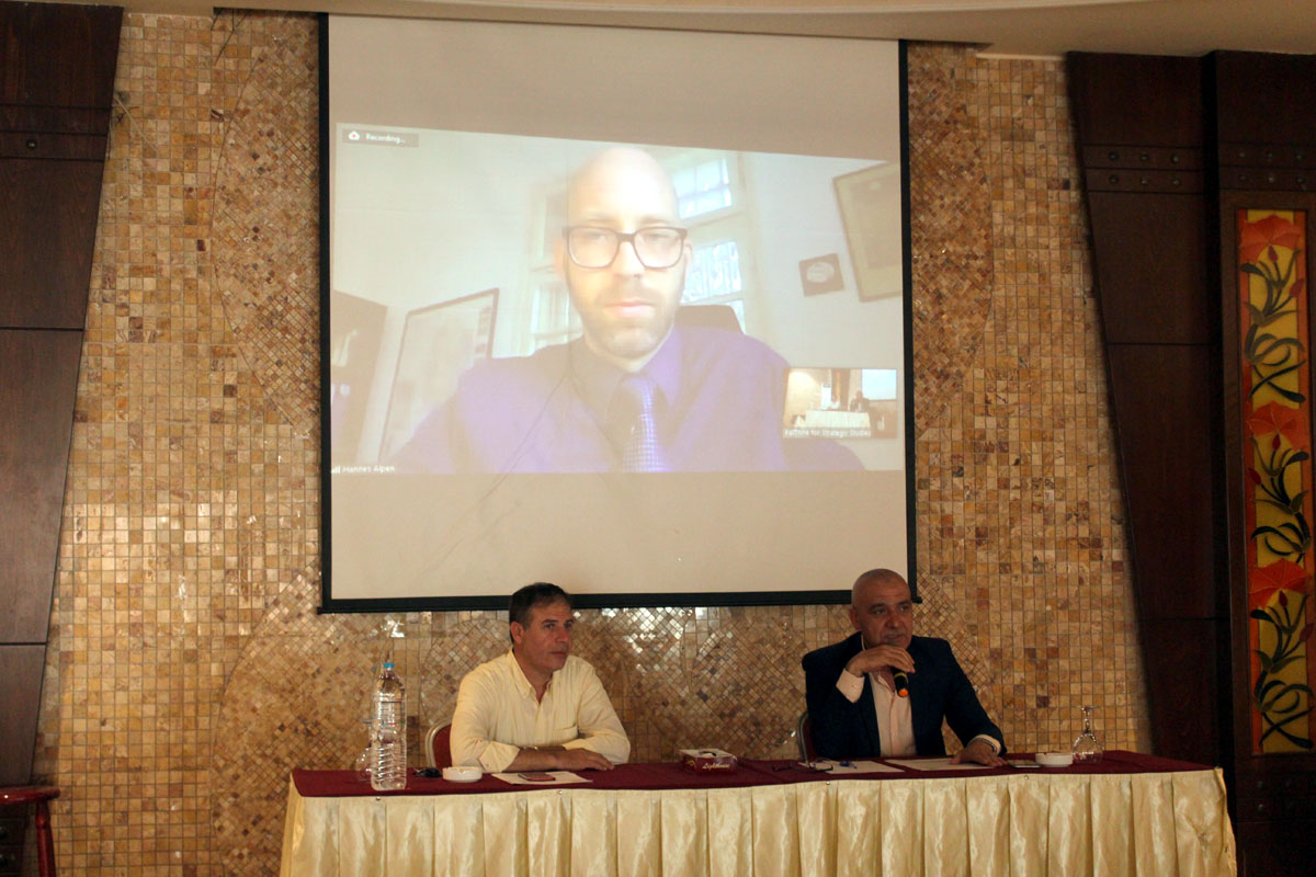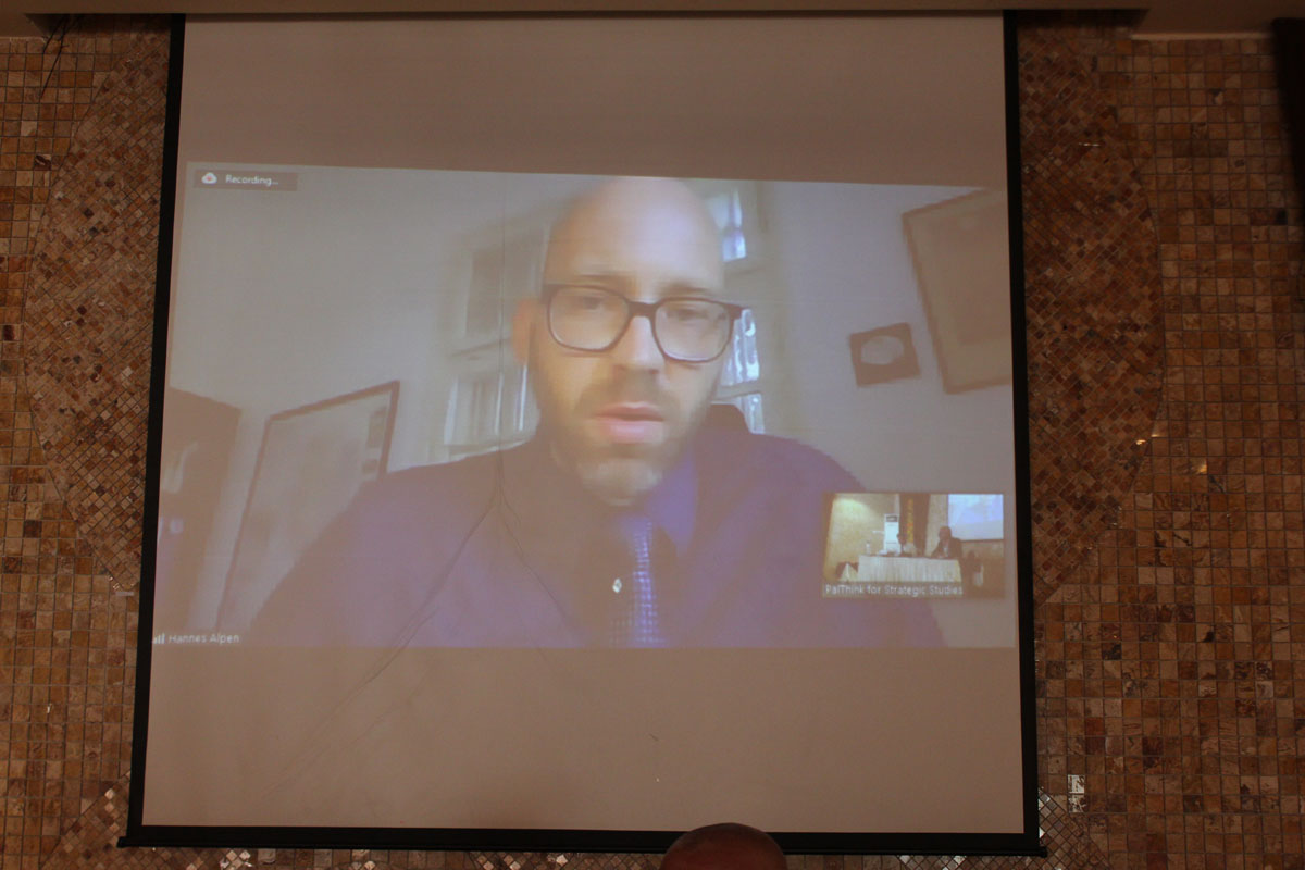 بدوره، تحدث من القدس عبر زووم أ. هانيس ألبين مدير مؤسسة ” فريدريش إيبرت الألمانية” في فلسطين معبراً عن سعادته بالتعاون والشراكة مع “بال ثينك”، وقال: “إننا بحثنا كثيراً في قضية الضم. البعض يقول إنه من الممكن أن يكون هناك ضم لمناطق صغيرة فقط، ولكن هذا أيضا خرق للقانون الدولي”.